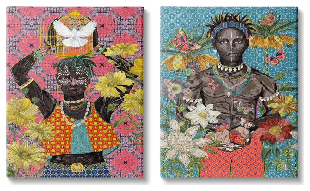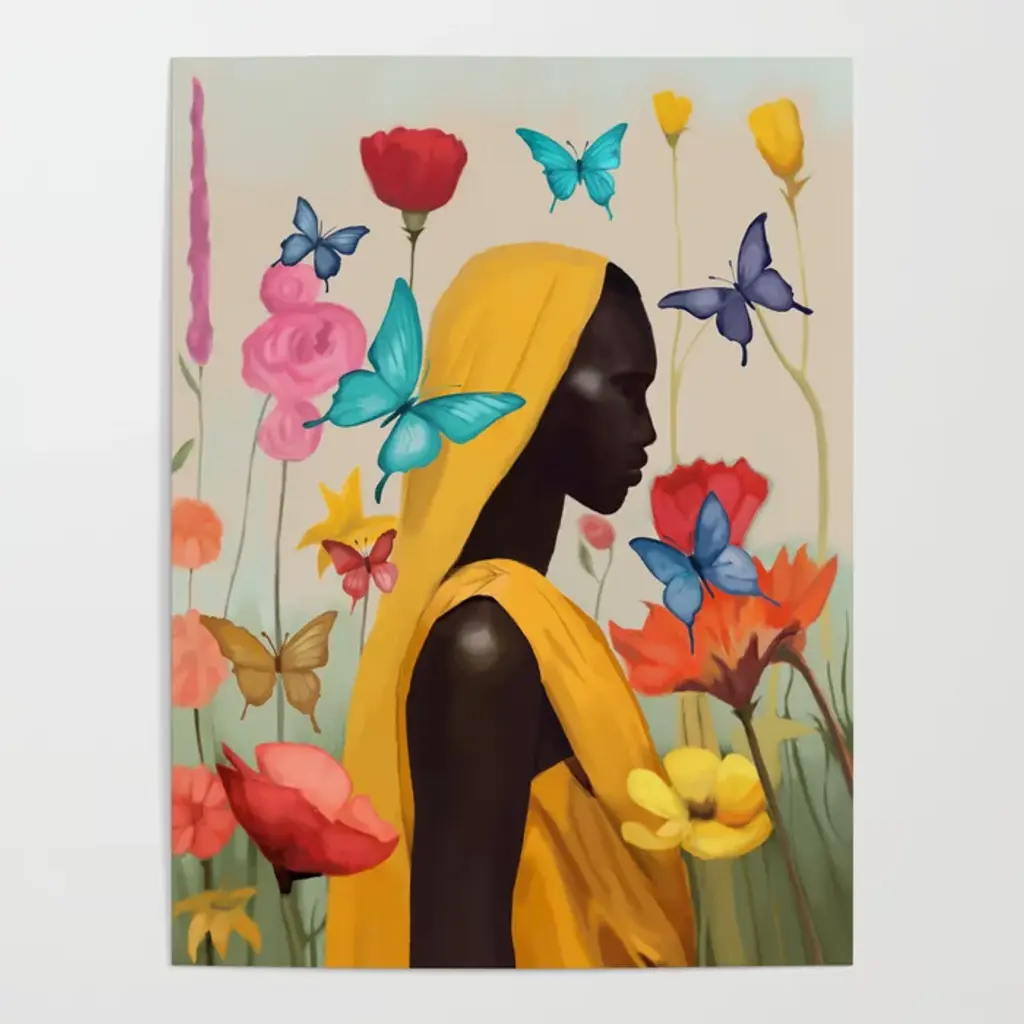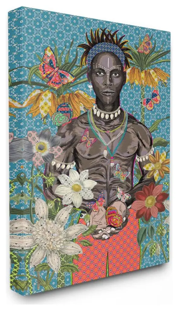 Man Releasing Butterflies Over Geometric Pattern24x30