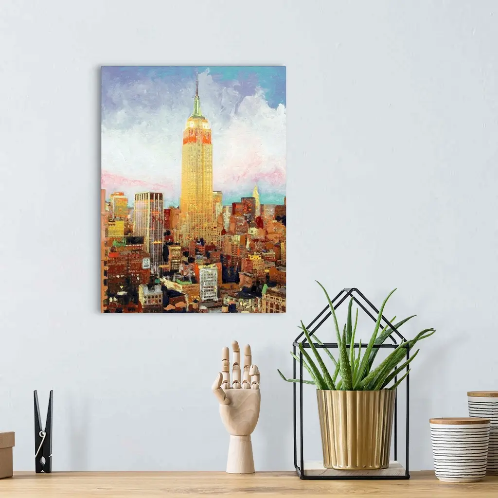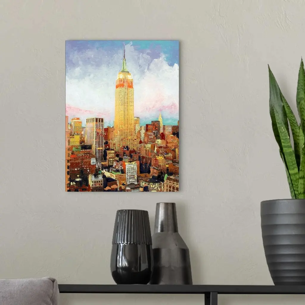 Empire State Building in the morning as the skyline comes to life in the day time colors from night colors.