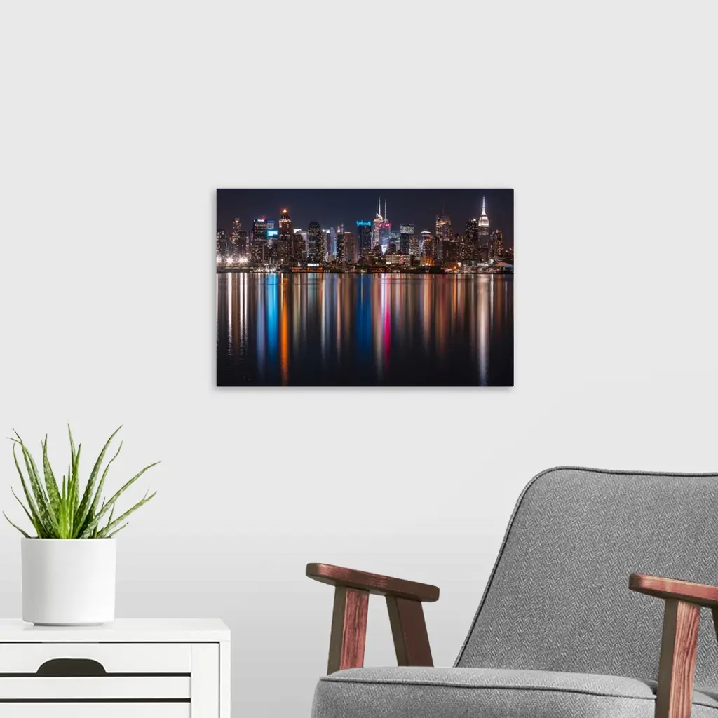 Long exposure of Manhattan, NYC and its rainbow reflection in the Hudson River.