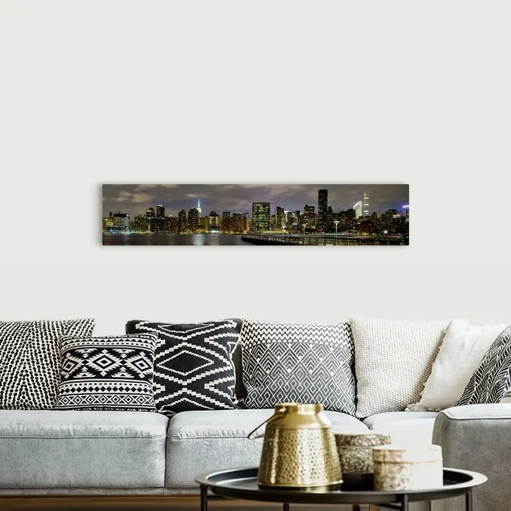 Manhattan Panoramic View On East River At Night wall art for home and office decor. Discover canvas art prints, photos, mural, big canvas art and framed wall art in GreatBigCanvas.com's varied collections.