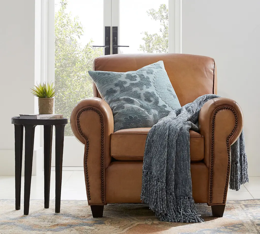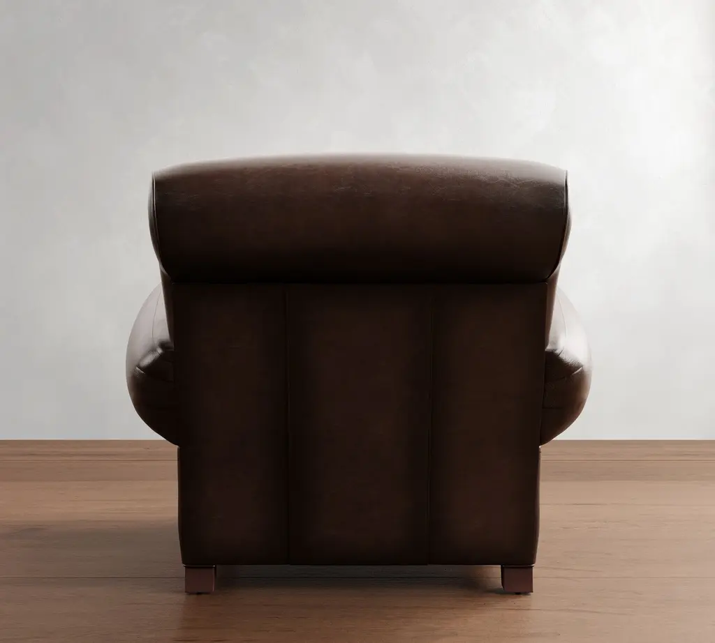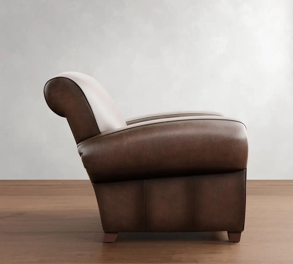 Inspired by a 1930s club chair, our Manhattan Collection has an exaggerated roll arm and high-back design that pays homage to the original. We added the deep seat and plush cushions to give it curl-up comfort. We love the refined warmth of the leather — over time, it'll develop a beautiful patina and that soft, live-in feel.