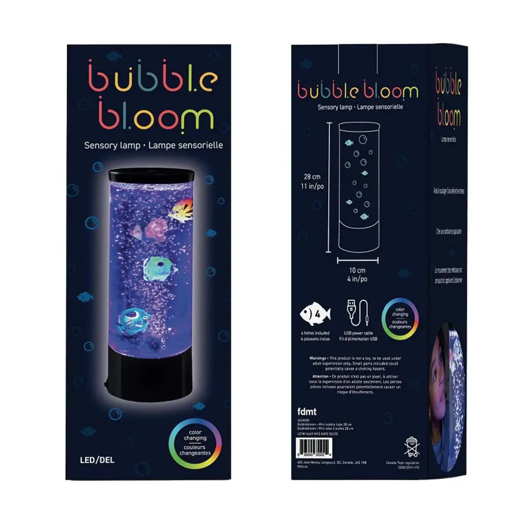 Calm and captivate children with the Bubblebloom Mini Sensory Lamp! The lamp's pump motor and LED lights create an enchanting visual of colors, bubbles, and fish that promotes concentration and creates a calming ambiance that brings relaxation. This sensory lamp simulates a lifelike underwater environment that serves as a calming visual aid, helping alleviate stress and anxiety. This lamp provides soothing sounds and sights sights.. Water will need to be added, directions included.