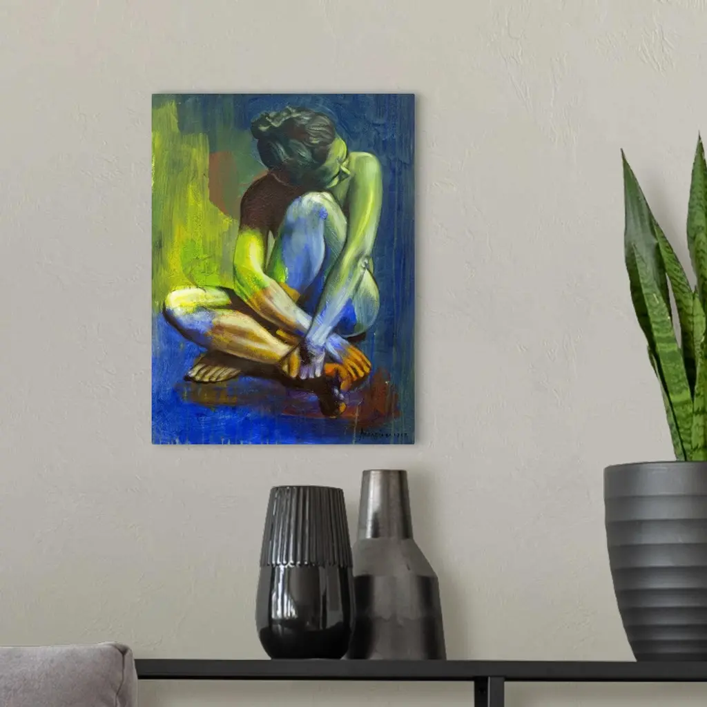 Beautiful colors play across the body of a lovely young nude. 'She looks very attractive in the neat position of her body,' artist Aricadia explains. 'Her face, which is turned away, tells us that she is uncomfortable with her condition.'