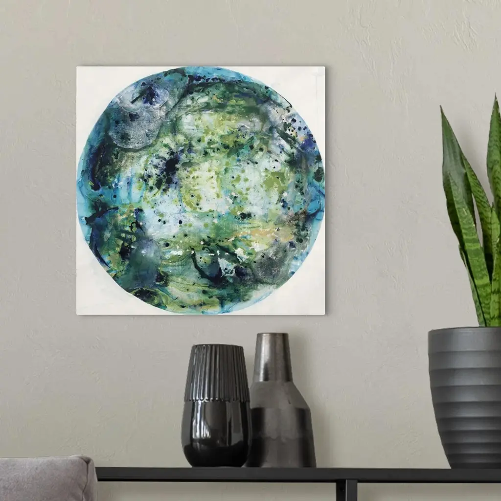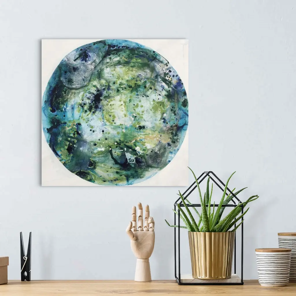 Glassy blue and green tones in a circular shape.