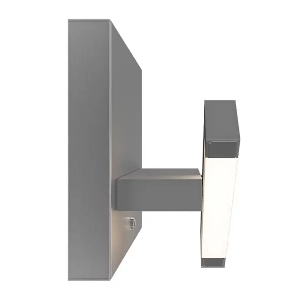 The Mantel LED Reading Light from dweLED extends a horizontal aluminum arm from a wall-mounted base with an adjustable shade at its end. The arm rotates to reposition the light source, while the shade pivots to direct output downward or at angles. A frosted diffuser softens the beam, and fingertip touch controls manage power, dimming, and color temperature without the need for external switches. Built-in USB and USB-C ports provide charging capability. The horizontal projection creates a shelf-like profile, with the driver concealed within the wall-mounted base for a clean appearance.