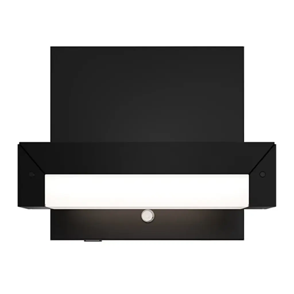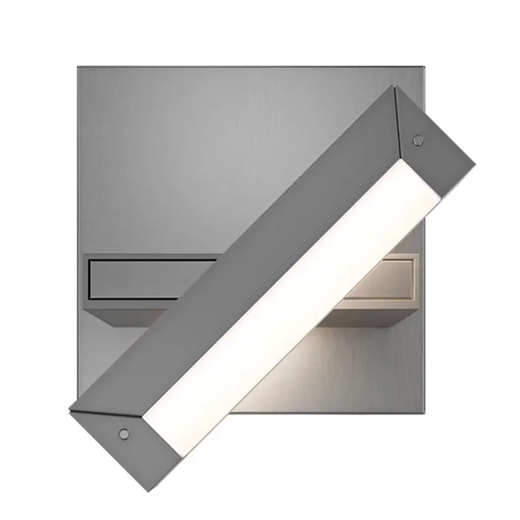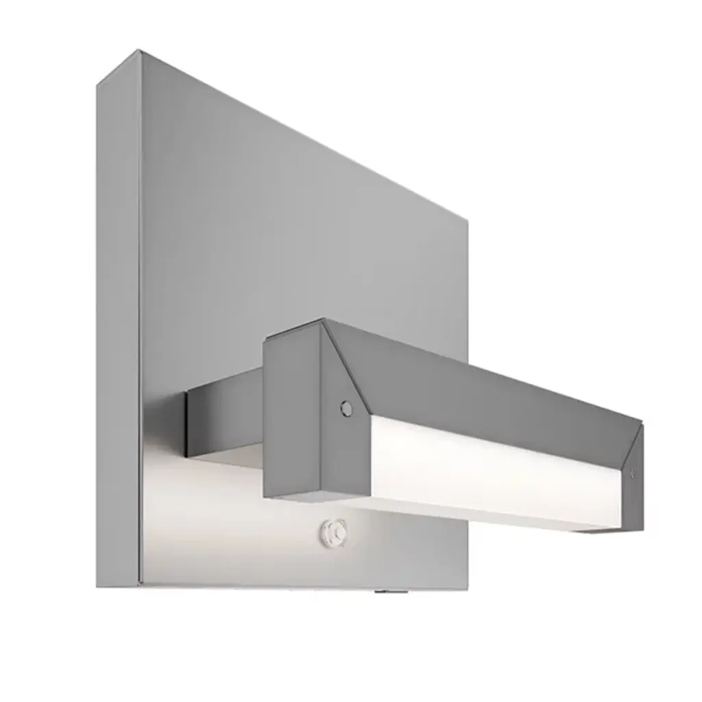 The Mantel LED Reading Light from dweLED extends a horizontal aluminum arm from a wall-mounted base with an adjustable shade at its end. The arm rotates to reposition the light source, while the shade pivots to direct output downward or at angles. A frosted diffuser softens the beam, and fingertip touch controls manage power, dimming, and color temperature without the need for external switches. Built-in USB and USB-C ports provide charging capability. The horizontal projection creates a shelf-like profile, with the driver concealed within the wall-mounted base for a clean appearance.