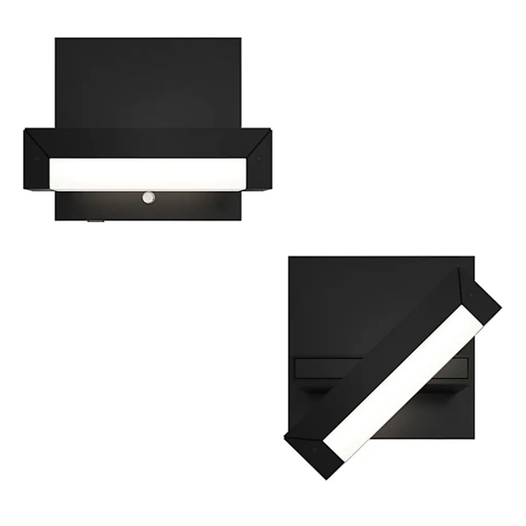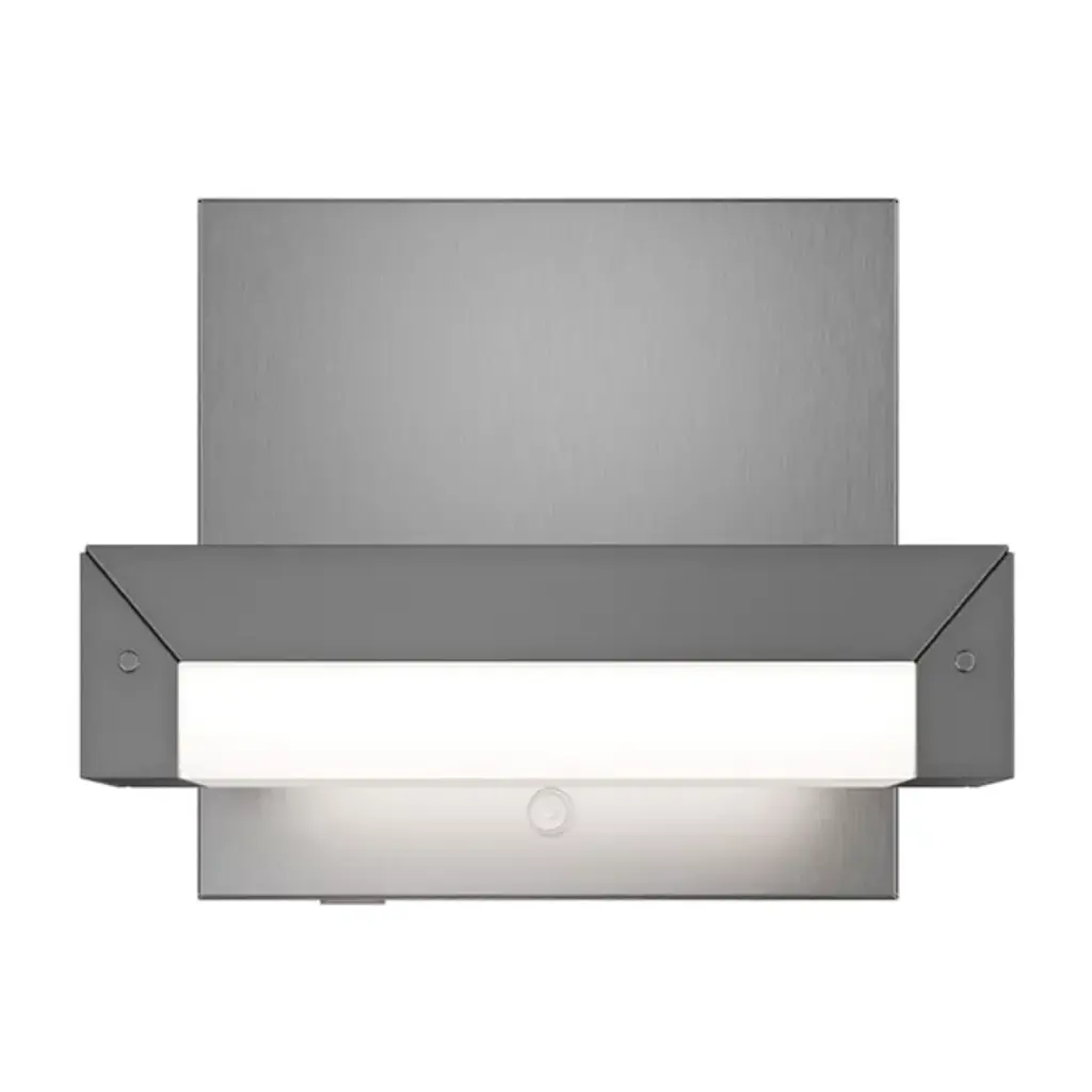The Mantel LED Reading Light from dweLED extends a horizontal aluminum arm from a wall-mounted base with an adjustable shade at its end. The arm rotates to reposition the light source, while the shade pivots to direct output downward or at angles. A frosted diffuser softens the beam, and fingertip touch controls manage power, dimming, and color temperature without the need for external switches. Built-in USB and USB-C ports provide charging capability. The horizontal projection creates a shelf-like profile, with the driver concealed within the wall-mounted base for a clean appearance.