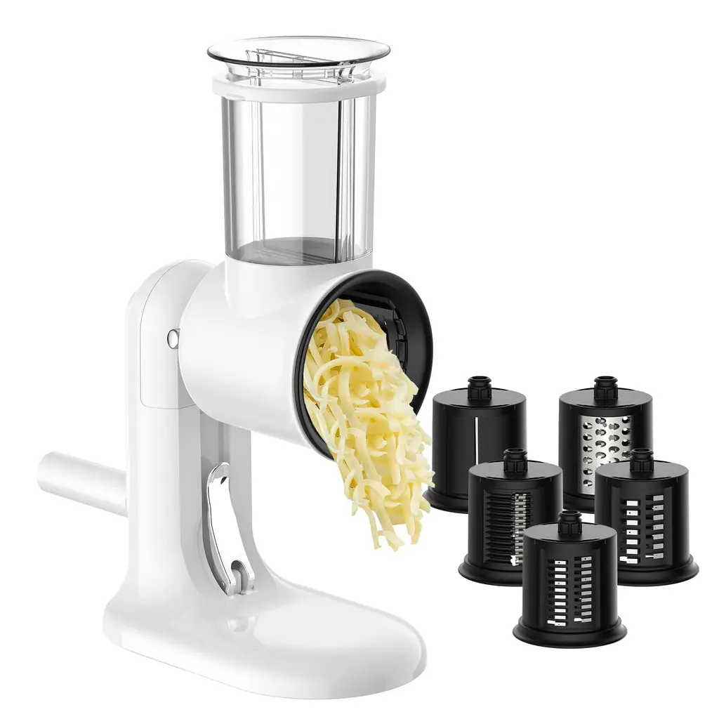 Manual Hand Crank Cheese Grater With 3 Interchangeable Blades - White