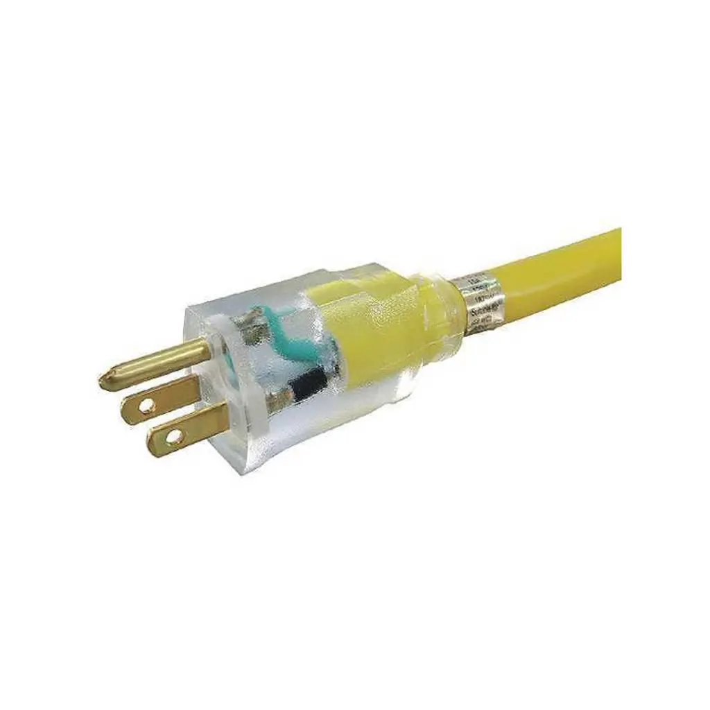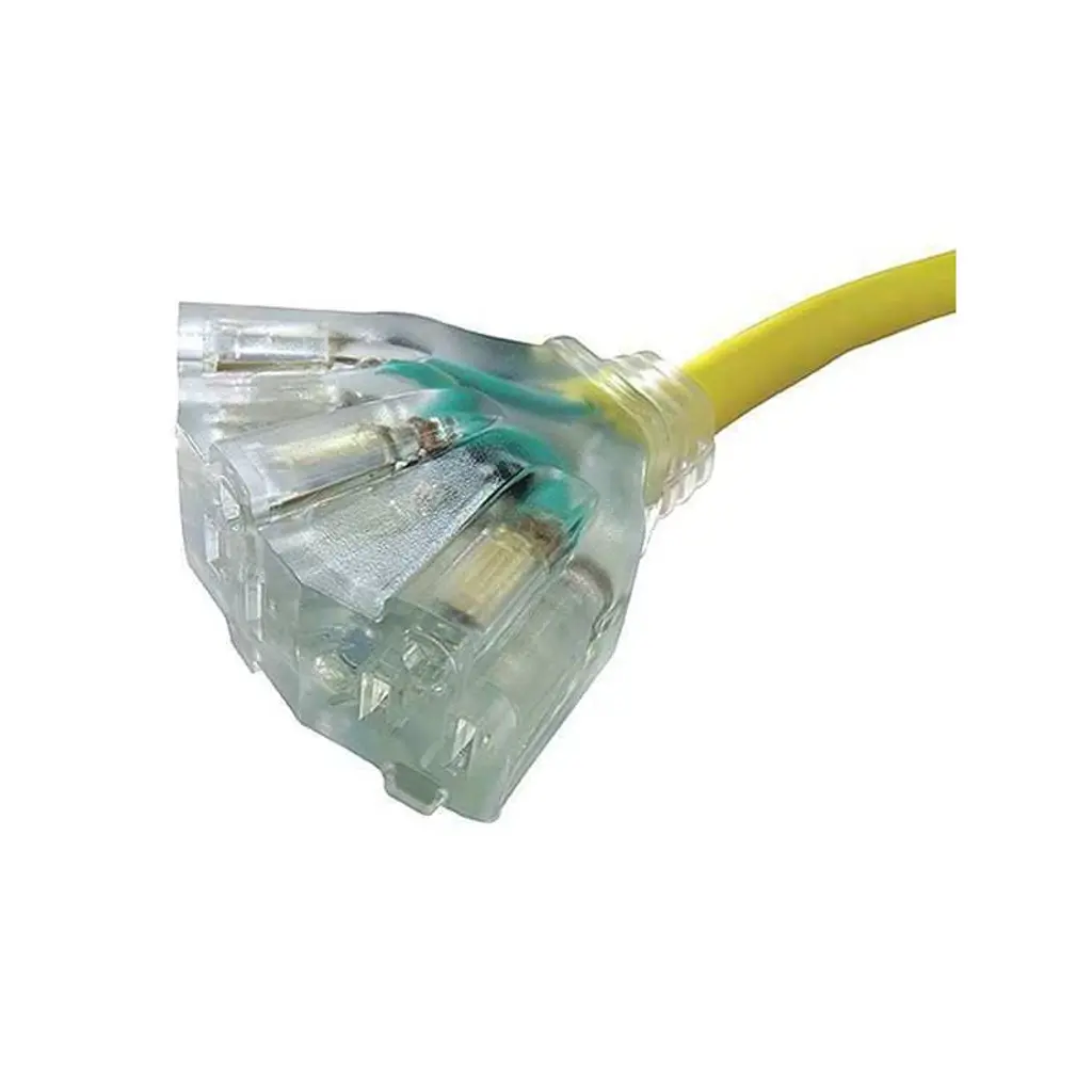 Lighted Extension Cord, Location Outdoor, Cord Length 50 ft, Wire Size 14 AWG, Max. Amps 15 A, Voltage 125V AC, Plug Configuration NEMA 5-15P, Receptacle Configuration NEMA 5-15R, Cord Ending W-Shape, Number of Outlets 3, Jacket Color Yellow, Jacket Material PVC, Trade Designation SJTW, Cord Shape Round, Temp. Rating -40 Degrees to 221 Degrees F, Number of Conductors 3, Power Indicator Yes, Plug Style Straight, Max. Watts 1,875 W, Nominal Outside Dia. 0.35 in