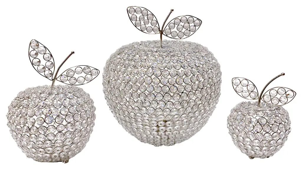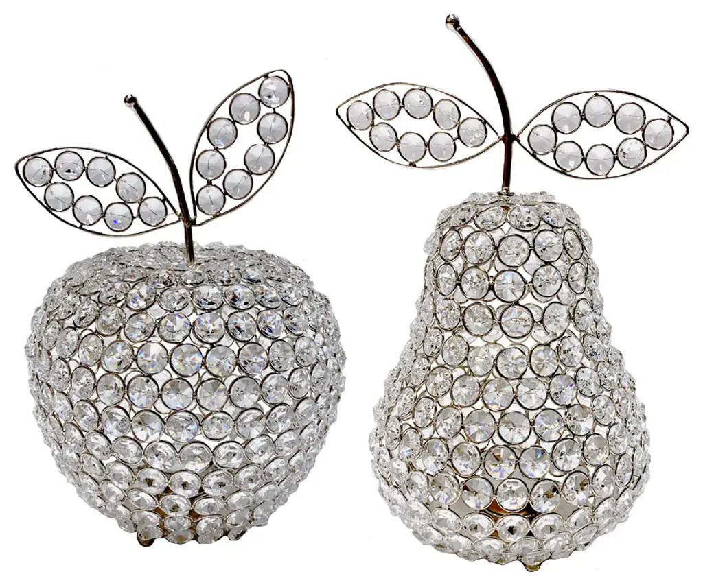 The Manzana Medium Cristal Silver Apple is an Elegant Statement Piece on any Tabletop. The Many Sparkling Crystals Accentuates this Accessory. This Apple is a Beautiful Addition to any Decor.