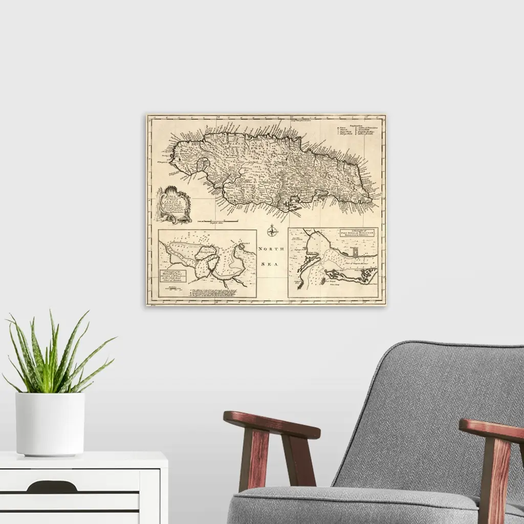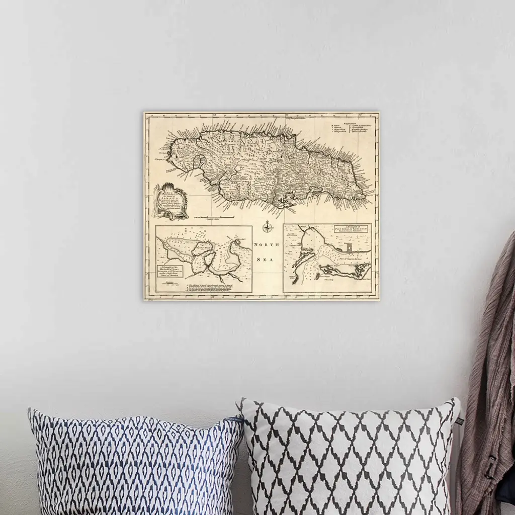 Map, Jamaica, 1752. British Map Of the Island Of Jamaica, Divided Into Its Principal Parishes, Published 1752.