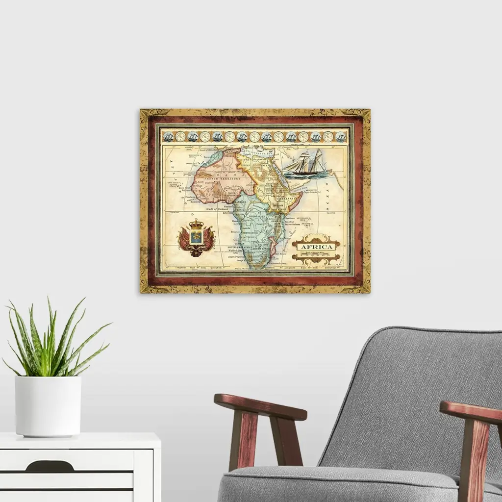 Map of Africa wall art for home and office decor. Discover canvas art prints, photos, mural, big canvas art and framed wall art in GreatBigCanvas.com's varied collections.