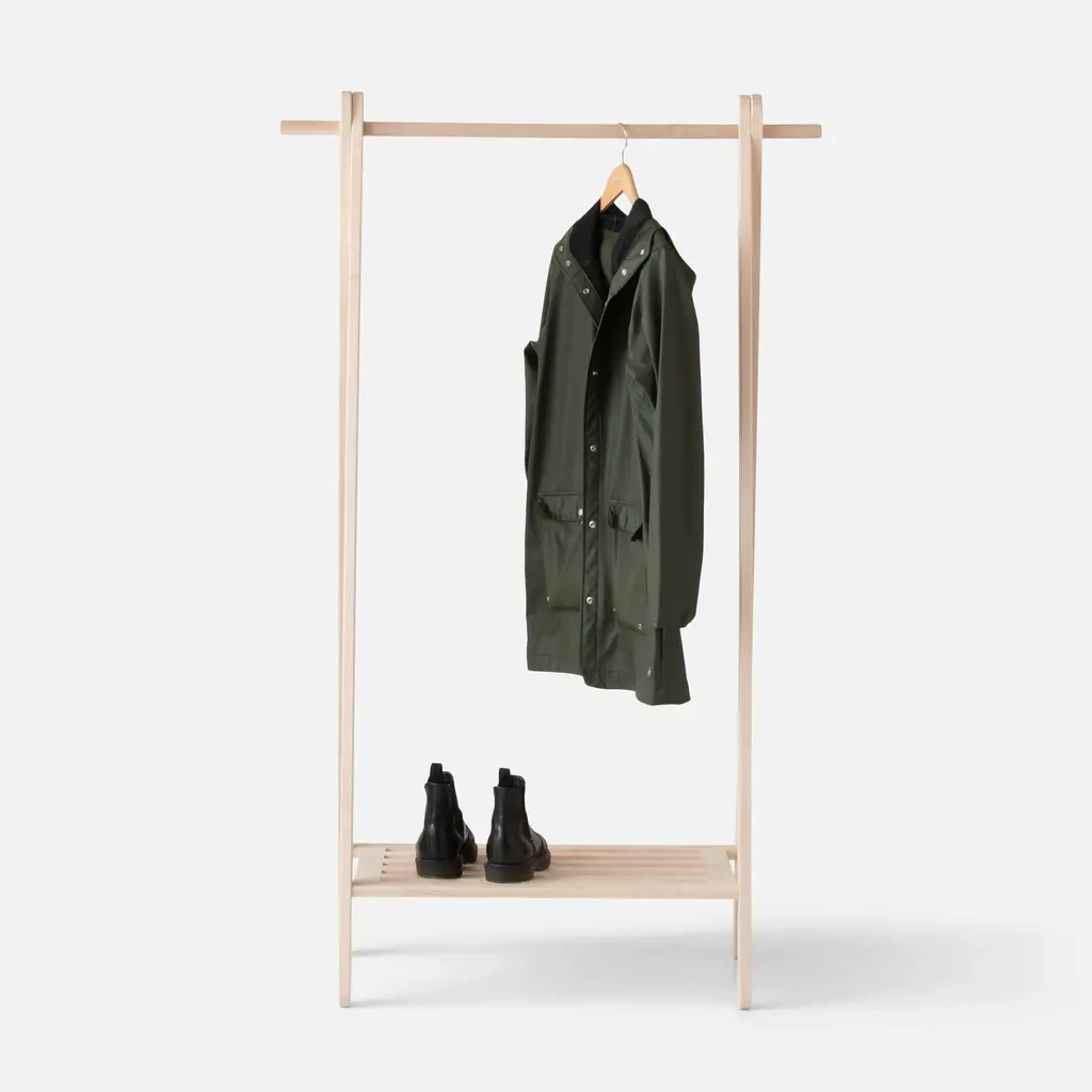A beautiful example of functional woodworking, the Maple Garment Rack offers a visually appealing and accessible organizational option for coats, hats, and other articles of clothing. Perfect for small spaces, each piece provides ample room for hanging garments, while a spacious lower shelf offers additional storage for shoes, boxes, or bins.