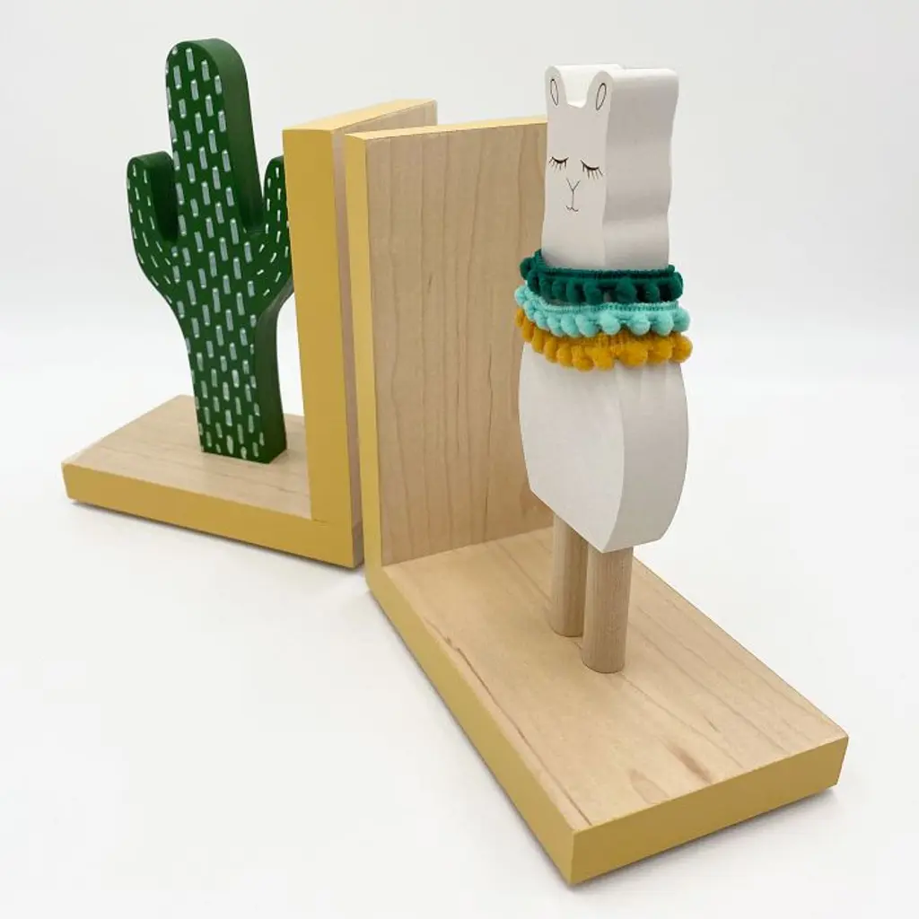Created by Maple Shade Kids. 6"w x 7"d x 4"h (each). Solid wood. Made with FSC®-certified wood from responsibly managed forests. Covered in a child-safe, water-based paint. VOC-free. Sold as a set of 2. Nonskid bumpers on bottom keeps bookends in place. Designed and made in Derry, New Hampshire. Your purchase of LOCAL items helps support small businesses right in your own backyard. Learn more.