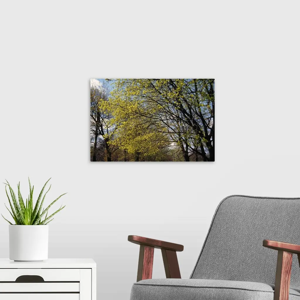 Maple trees budding in spring, New York wall art for home and office decor. Discover canvas art prints, photos, mural, big canvas art and framed wall art in GreatBigCanvas.com's varied collections.