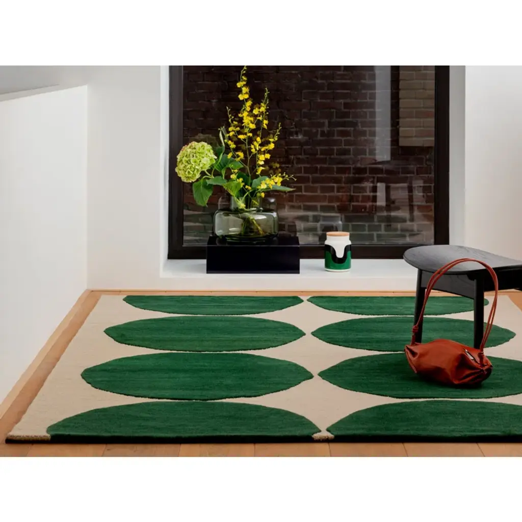 Maija Isola's Isot Kivet (stones) design builds on circles cut with scissors. The pattern was most likely inspired by the big rough-edged stones that were manually cleared from the designer's atelier home's grounds.