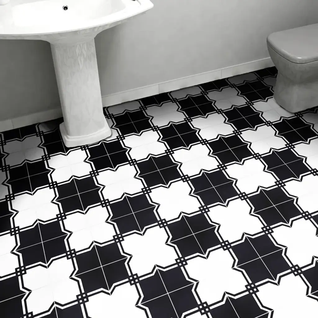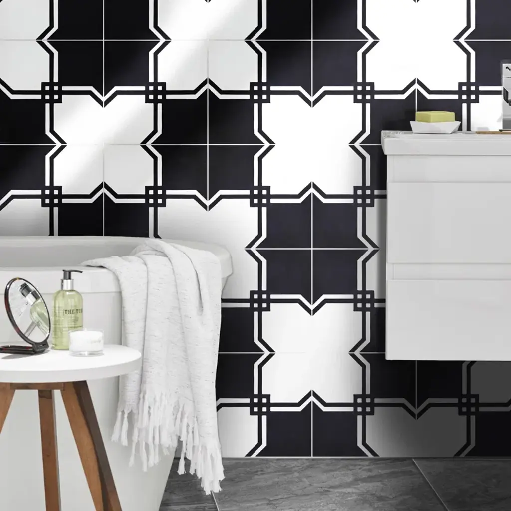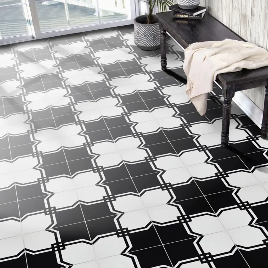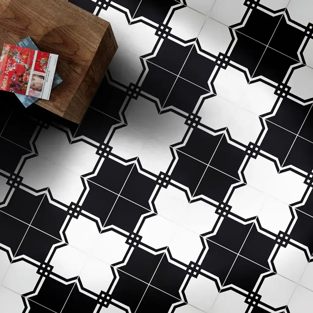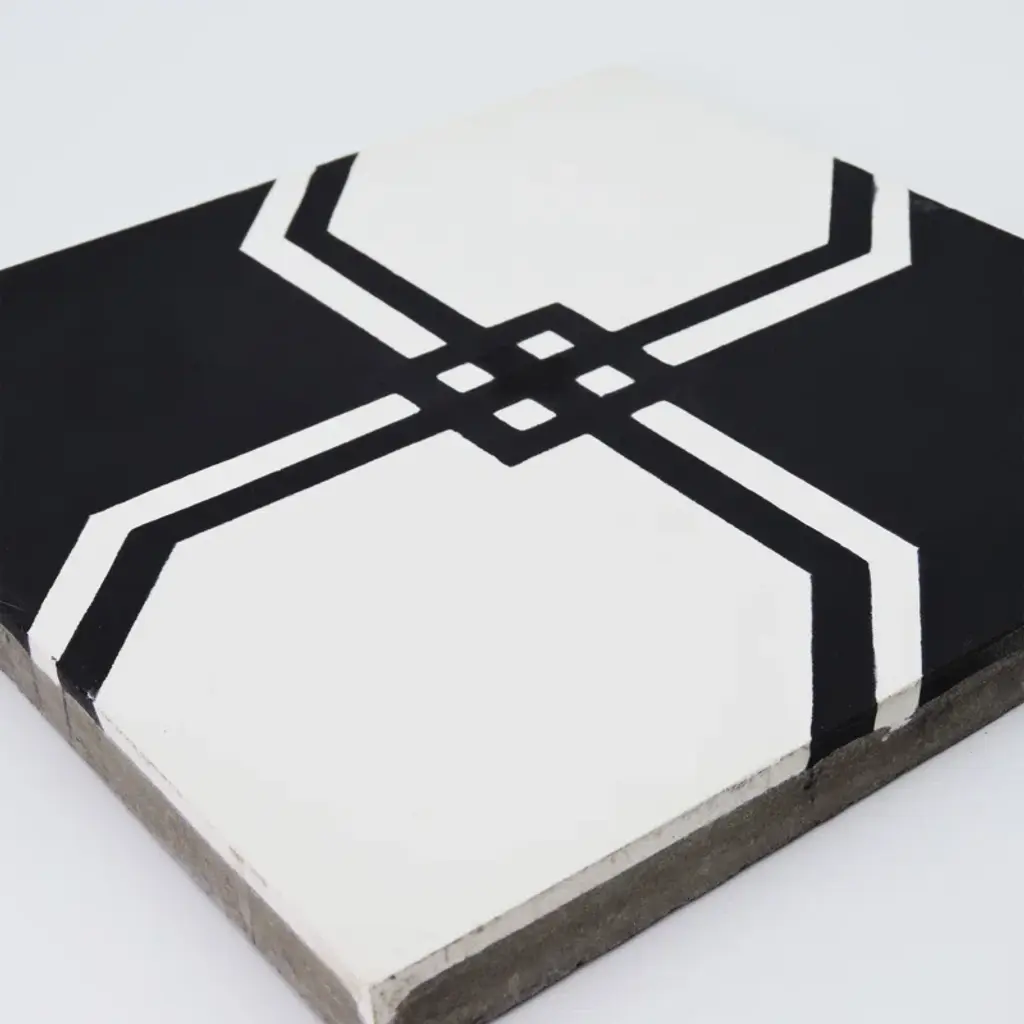 Marakech is a unique cement tile. Its bold and intertwined pattern will connect any room together. Marakech's black and white colors offer a modern style. Its design will attract class and style to your home.