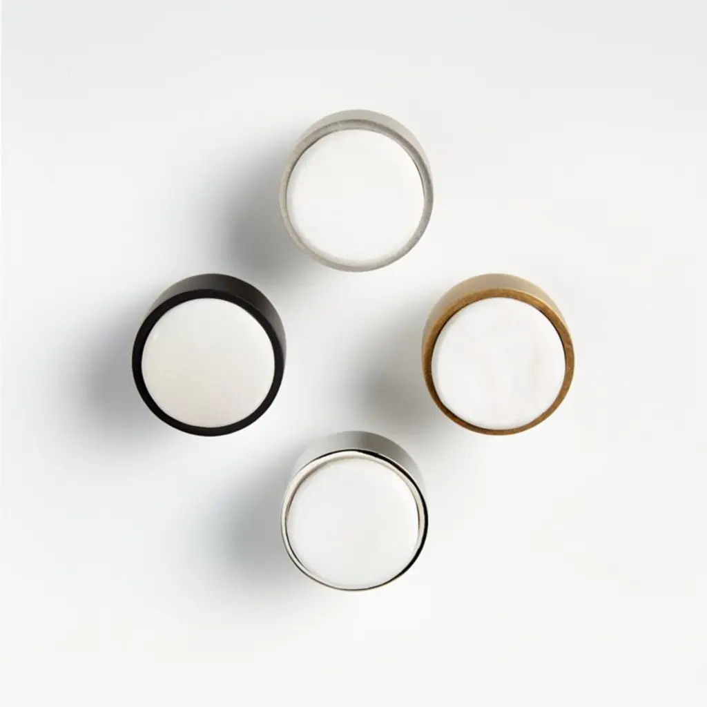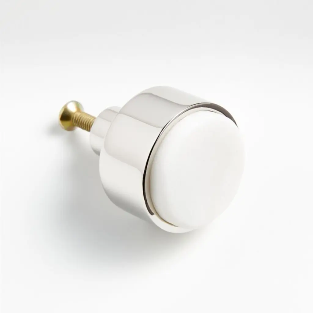 Each one of these handsome knobs begins with a hand-selected piece of white marble that's cut, shaped and polished to fit perfectly in a cylindrical setting finished in antique brass. An instant update for the kitchen, bathroom or your favorite piece of furniture, the knob adds a touch of glam to cabinets and drawers. Each marble-and-brass knob is handcrafted and easy to install.