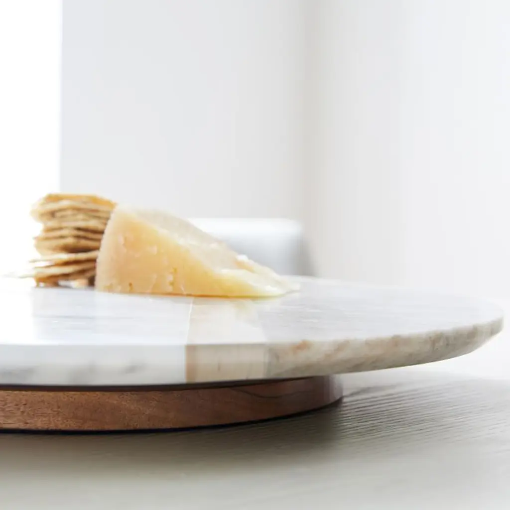 With a rotating marble board atop an acacia wood base, this Lazy Susan makes serving the whole table easier (and looks good while doing so, too). 15"diam. x 1.75"h. Marble in a Natural/Pink finish. Acacia wood base. Made in India.