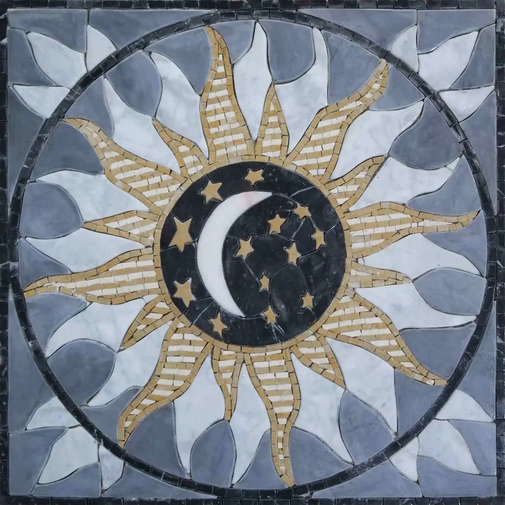 Look to the Celia Brown marble moon mosaic for an eye-catching kitchen backsplash or mosaic garden art. A blend of yellow brown and ivory hand-cut stone tiles come together to create this alluring moon medallion. With over 4 sizes to choose from the decorative possibilities are endless. Sq.Ft. : 3.88Marble Count : 4300Backing: Your Mosaic comes on a mesh Backing Mosaic Uses: Floors, Walls both Indoor or Outdoor as well as wet placesTechnique: Handmade