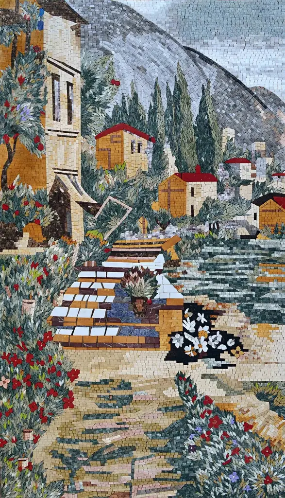 Transform your living space into an oasis of elegance with our exquisite Marble Mosaic Art - The Terrace View. This stunning piece of wall art captures the breathtaking beauty of nature and brings it right into your home. Each mosaic is meticulously handcrafted using the finest natural stones, ensuring that every piece is unique and filled with character.The Terrace View is more than just a decorative item; it is a celebration of the wonders of nature. The intricate design showcases a harmonious blend of colors and textures that mimic the serene vistas of a picturesque terrace, allowing you to soak in the sights and serenity of nature from the comfort of your own space. Whether you’re looking to add a touch of sophistication to your living room, create a calming atmosphere in your bedroom, or enhance your office environment, this mosaic wall art serves as the perfect focal point. Its exquisite craftsmanship and natural beauty will captivate your guests and ignite their sense of wonder. We understand that every space is different, which is why The Terrace View is available in custom sizes. This personalized approach ensures that you can find the perfect fit for your wall, making it an ideal choice for both large and small areas.Embrace the beauty of nature and elevate your home decor with the Marble Mosaic Art - The Terrace View. Experience the tranquility and charm it brings, and let your walls tell a story of artistic passion and natural elegance. Don’t miss the opportunity to own this unique piece of art that is sure to enhance your environment and inspire conversation for years to come.