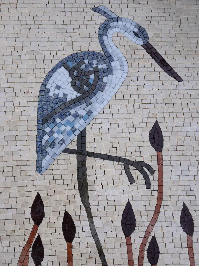 Introducing our stunning Marble Mosaic Mural - Standing White Heron, a breathtaking piece of art that brings elegance and sophistication to any space. Expertly crafted from the highest quality marble mosaic tiles, this exquisite mural features a detailed and striking representation of a white heron, a symbol of grace and tranquility. The Marble Heron Mosaic Mural is not just a decorative element; it is a purposeful addition that transforms your bathroom or any other area into a serene oasis. Each tile is meticulously selected for its unique color and texture, allowing the heron's majestic figure to stand out beautifully against the subtle backdrop. The natural variations in the marble enhance the overall aesthetic, ensuring that no two murals are alike.Perfect for use as a backsplash in your bathroom, kitchen, or as a focal point in any room, this mural captures the eye and evokes a sense of calm. The combination of artistry and craftsmanship provides an inviting atmosphere, making it an ideal choice for those looking to elevate their home decor. Not only does our Marble Mosaic Mural - Standing White Heron bring beauty to your space, but it also adds value and sophistication to your home. Easy to install and maintain, this mural is designed to withstand the test of time while retaining its stunning appearance. Bring the serene beauty of nature into your home with the Marble Heron Mosaic Mural. Experience the tranquil essence of the white heron every day, and let this exquisite piece of art inspire and calm your living space. Embrace elegance and artistry with our Marble Mosaic Mural - Standing White Heron.