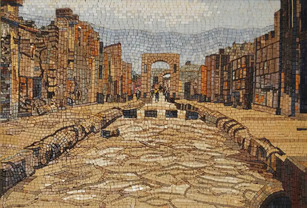 Immerse yourself in the beauty and history of ancient Rome with our exquisite Marble Music Mural - Pompeii Mosaic. This stunning, fully handcrafted mosaic captures the essence and artistry of one of history's most fascinating archaeological sites. Pompeii, located in southern Italy's Campania region, was once a thriving and sophisticated Roman city, renowned for its remarkable culture and architectural grandeur. Tragically preserved beneath meters of ash and pumice from Mount Vesuvius' catastrophic eruption, its splendor endures through this radiant artwork. Expertly representing the intricate craftsmanship of ancient mosaic art, each piece is carefully hand-cut and arranged to create a breathtaking visual narrative. The mosaic's vibrant colors and patterns evoke the spirit of Pompeii, bringing a captivating piece of this ancient world into your living space. Crafted from premium quality marble, this mural is not only a durable work of art but a luxurious statement piece that withstands the test of time. Notably, the inclusion of luminous Brown Quartz stones adds a jewel-like, crystalline brilliance that shimmers with translucent radiance, enriching the mosaic's warm earth tones with scintillating depth and sophistication. This natural stone’s prismatic qualities catch the light, offering a silky, radiant surface that elevates the mural’s exquisite detail. Perfect for living rooms, study areas, or music rooms, this handcrafted mosaic enchants with its story and enhances your décor with elegance and timeless luxury. Rekindle your connection with history and elevate your home aesthetics with this magnificent mosaic. Experience the allure of Pompeii every day with this captivating mural, a premium quality addition that showcases both beauty and heritage.