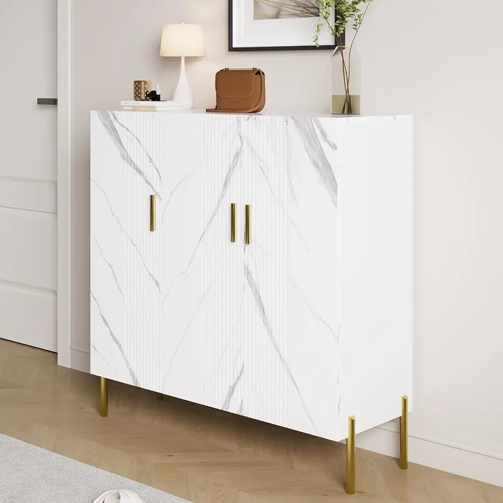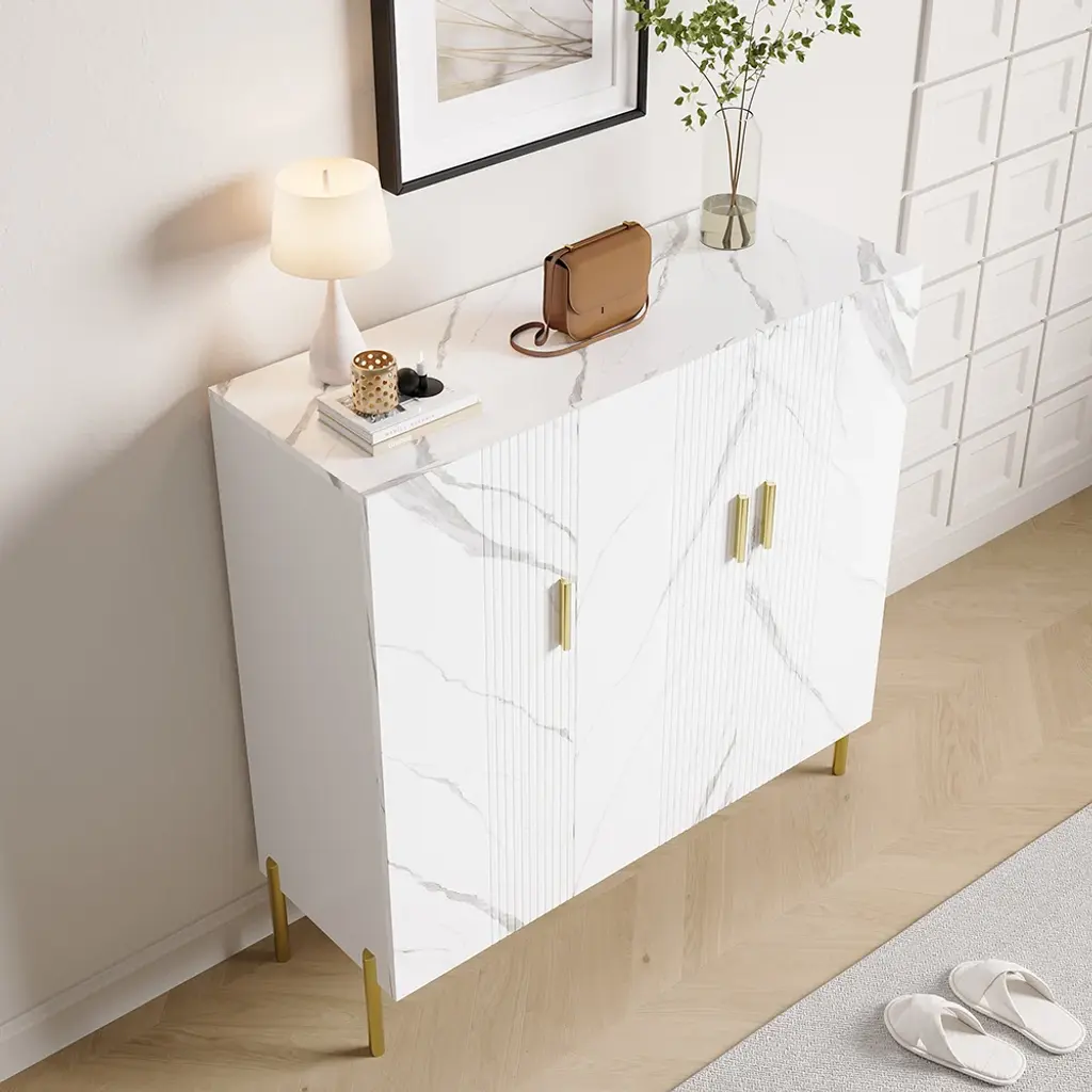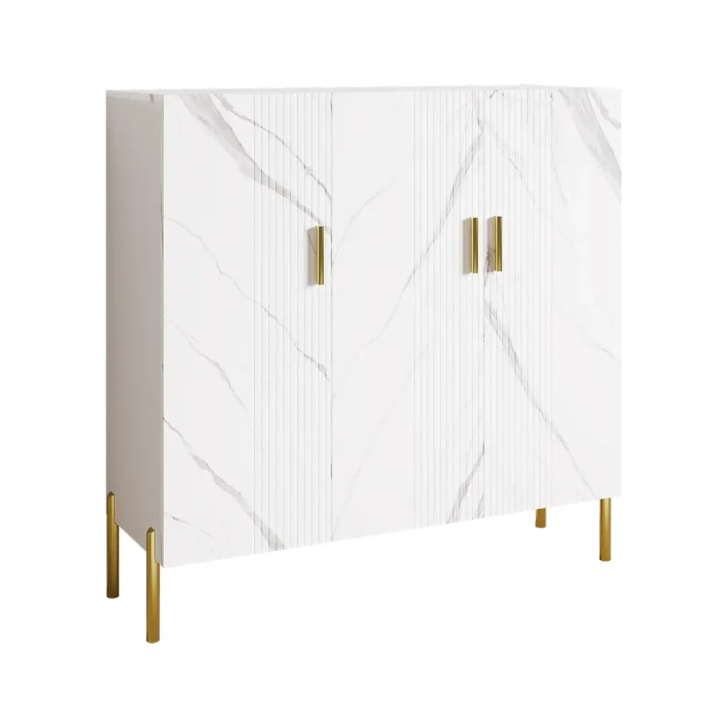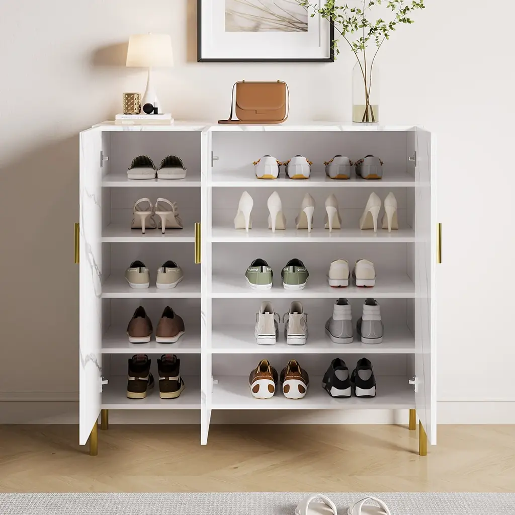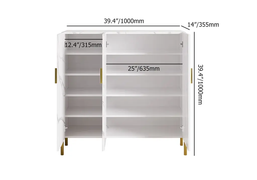 This shoe cabinet is one of the best creations, compact and well designed. Its doors are designed in white with marble veining and a gold finish to suit a variety of color schemes. It has over 5 levels and 3 doors, providing enough space for your shoes and other accessories. This shoe cabinet is a must-have for fresh style and practical storage. Shoes of all shapes and sizes can be easily stored inside, including heels, sneakers, flats, and more.