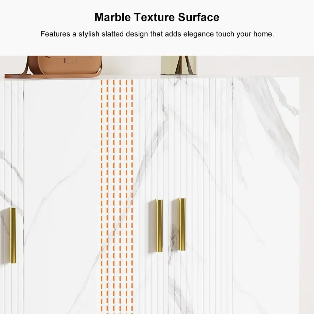Marble Texture Shoe Storage Cabinet 3 Doors & 5 Shelves Entryway Closet Shoe Storage