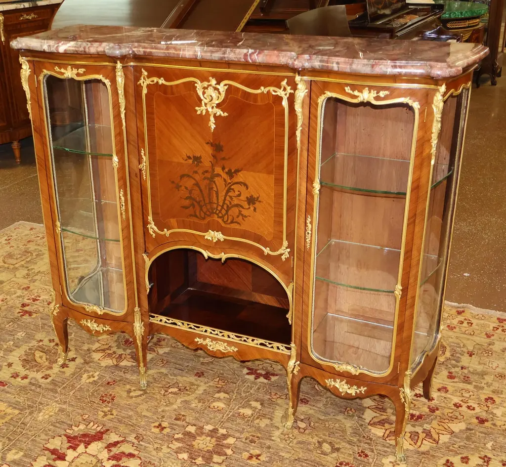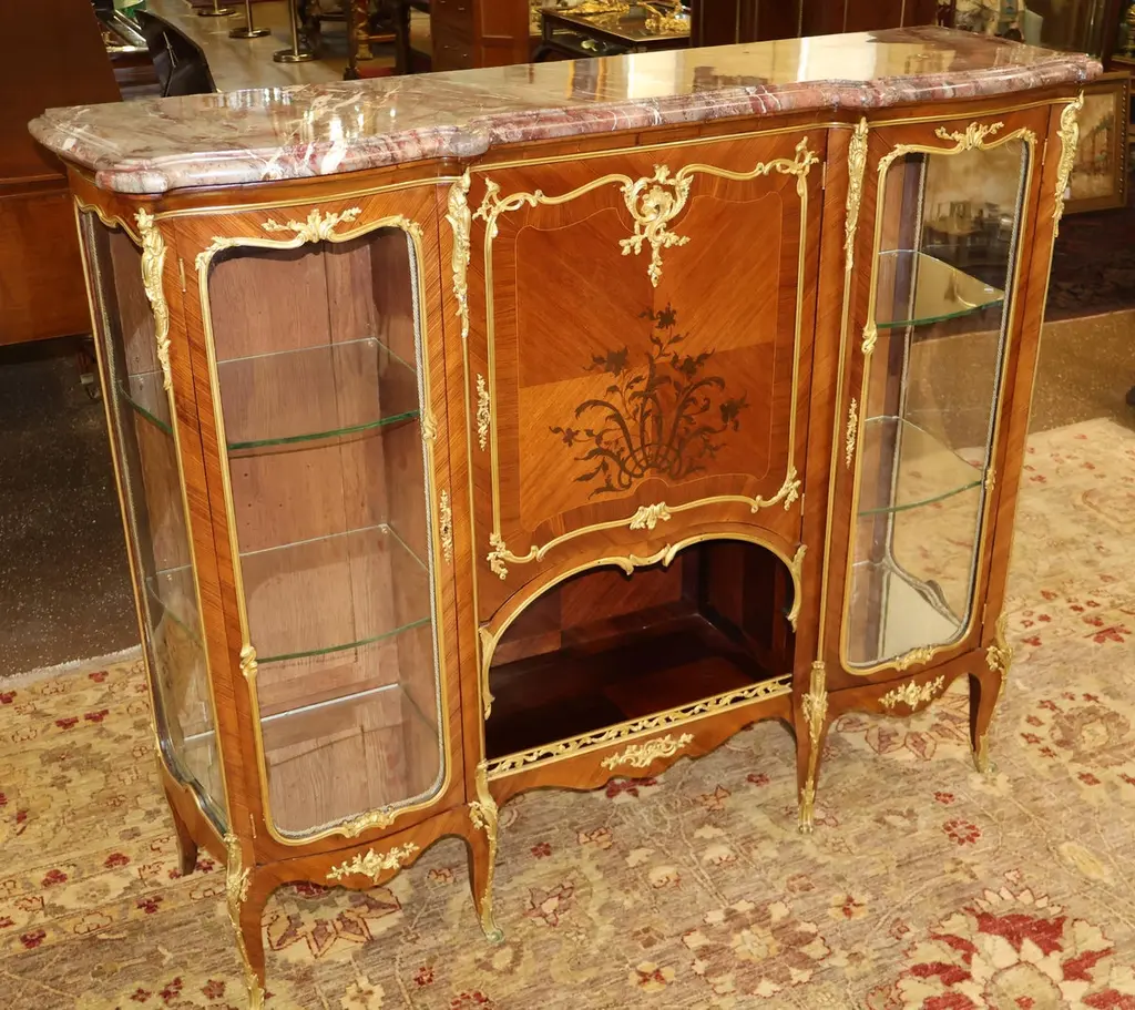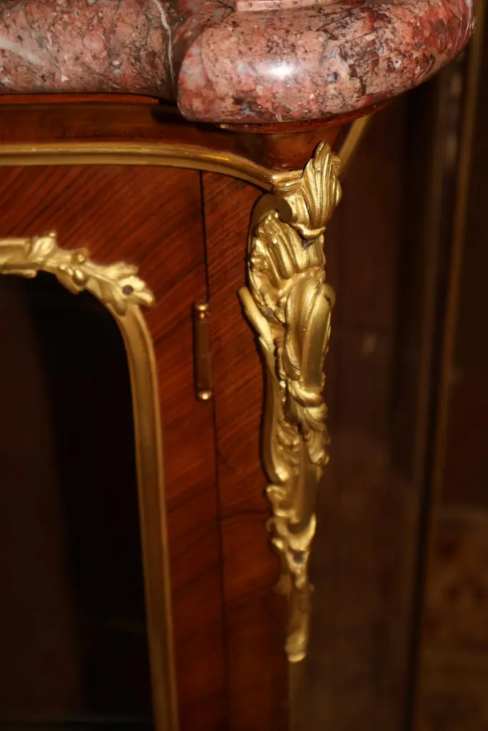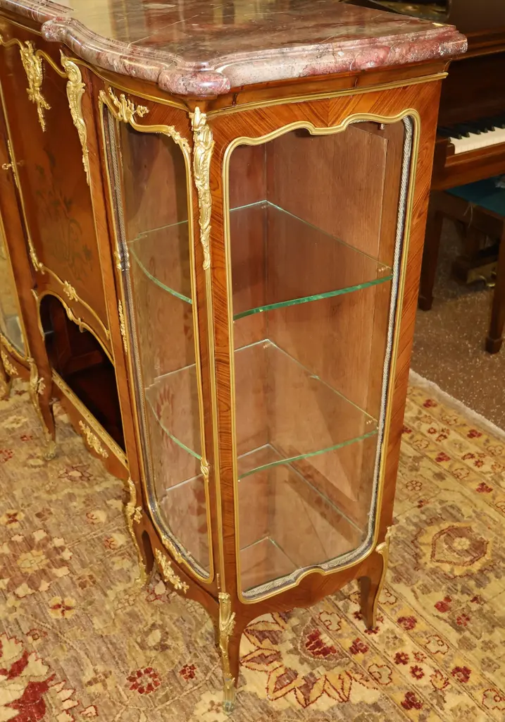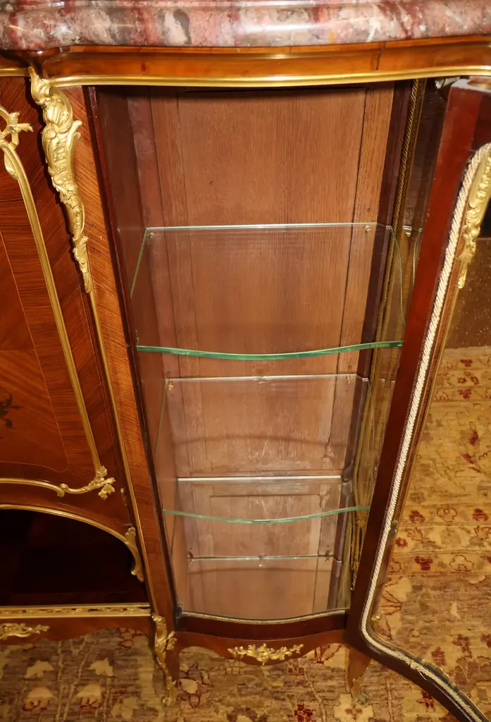 Marble Top French Ormolu Kingwood Inlaid Marquetry Vitrine Attributed To Linke