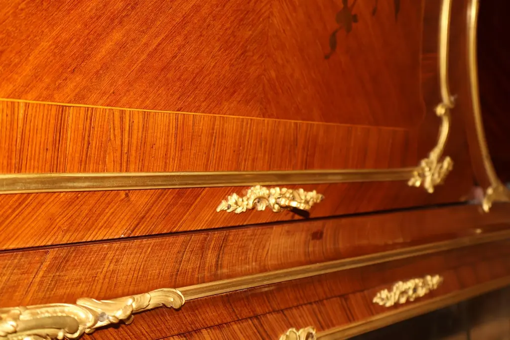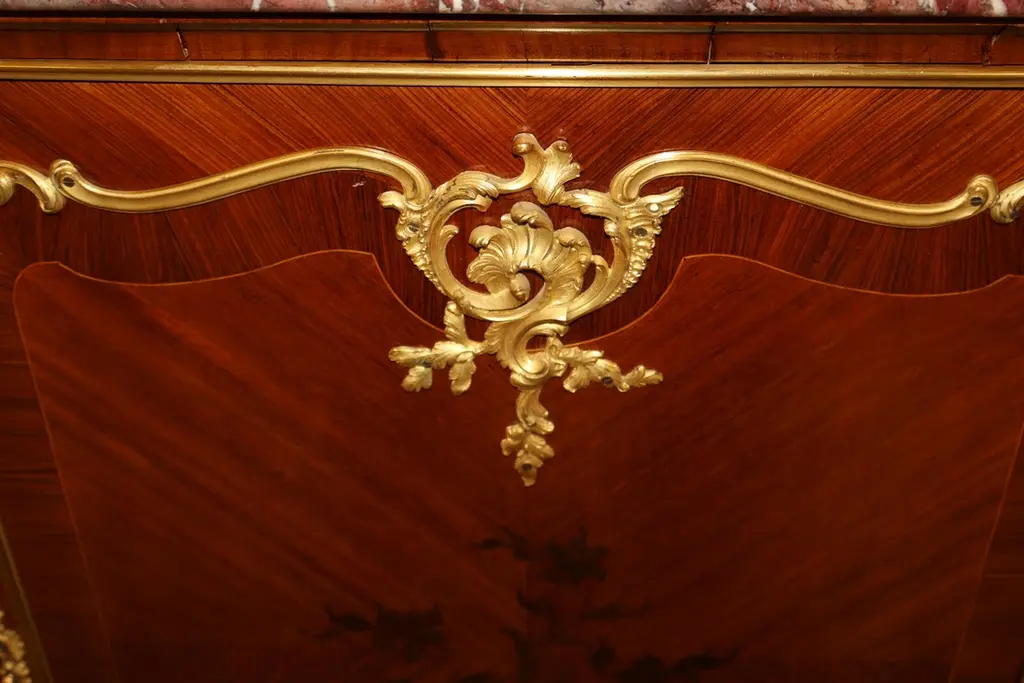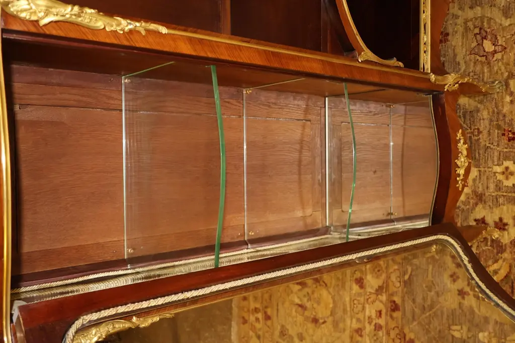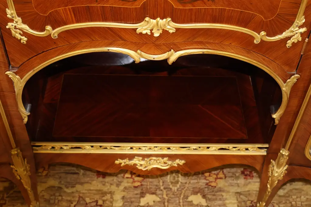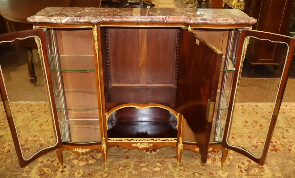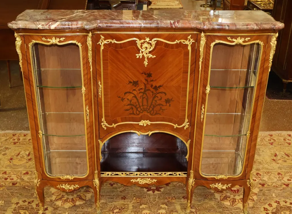 Marble Top French Ormolu Kingwood Inlaid Marquetry Vitrine Attributed To Linke