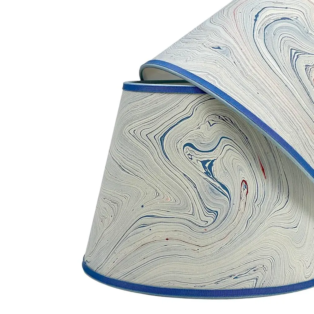 Marbled Paper Lampshade In Blue Swirl - 9” X 16” X 11”