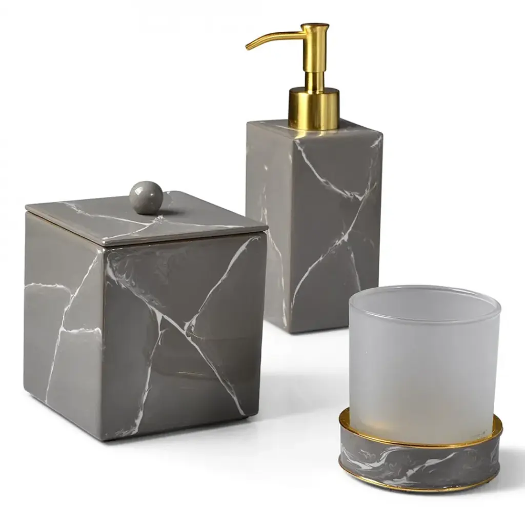 Marbleous Faux Marble Oatmeal Enamel/gold Trim Tall Square Container (3.75"w X 3.75"l X 5"h)