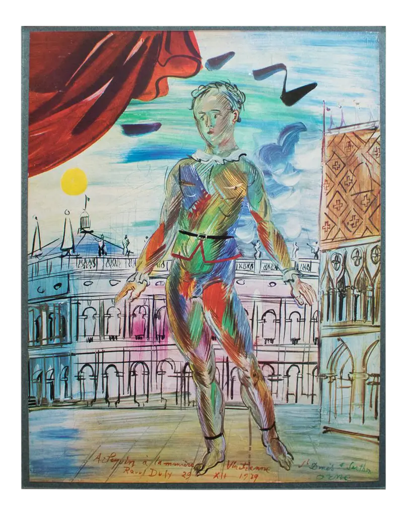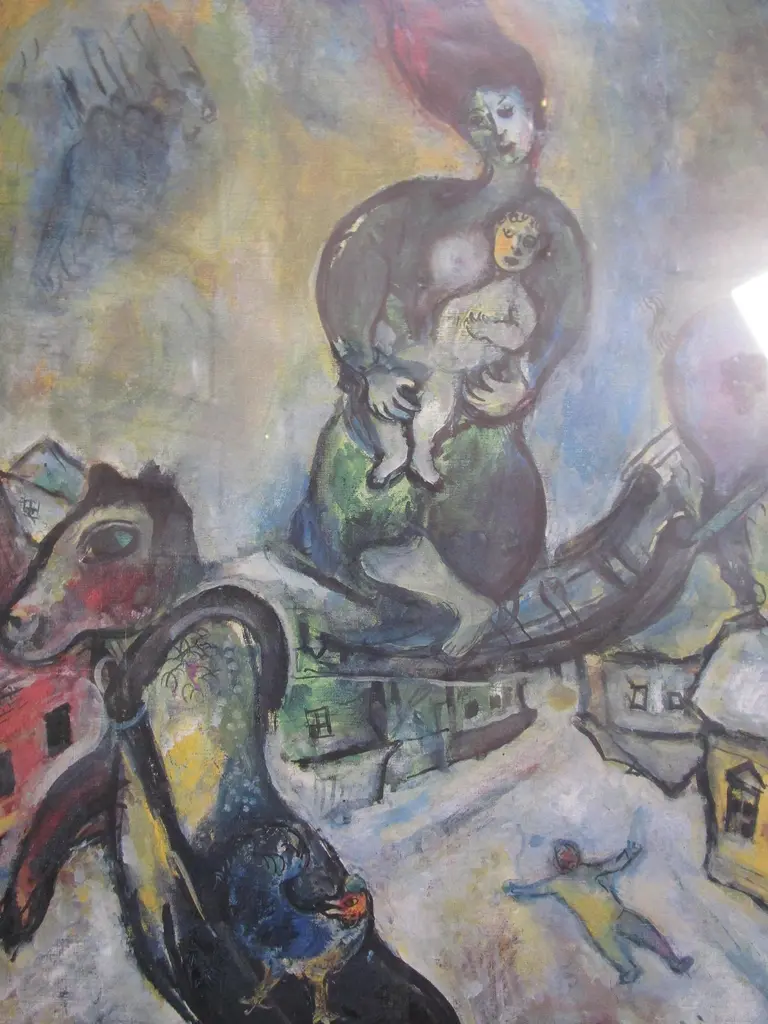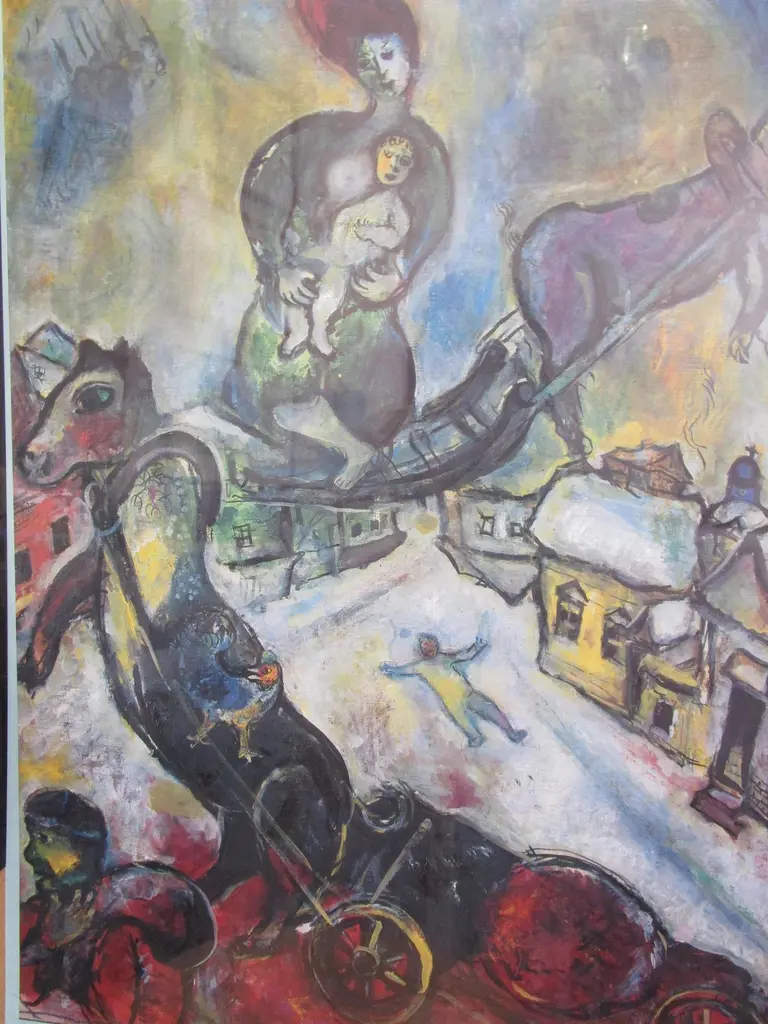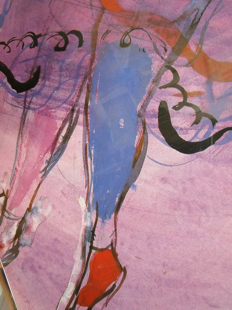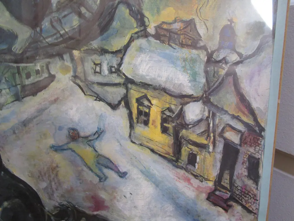 This is a special pair. Celebrate the dreamlike world of Marc Chagall with this striking pair of unused exhibition posters, preserved flat and in excellent condition. This duo includes a 1983 Rome showpiece featuring Chagall’s folkloric village and horse imagery — evoking his Eastern European hometown of Vitebsk — alongside a vivid Centre Georges Pompidou lithograph of a dancer in joyful motion, rendered in bold purples and reds. Both posters are offset lithographs produced under museum auspices and measure 28 x 20 inches. Never rolled or mounted, their vibrant colors and rich symbolism reflect Chagall’s iconic blend of memory, fantasy, and spiritual longing. This ready-to-frame pair makes an ideal statement for collectors, designers, or anyone drawn to modernist storytelling. Sold together for impact, this set bridges Chagall’s theatrical and deeply personal artistic worlds. 1985, the year the "Dancer" was exhibited was the year of the artist's death.