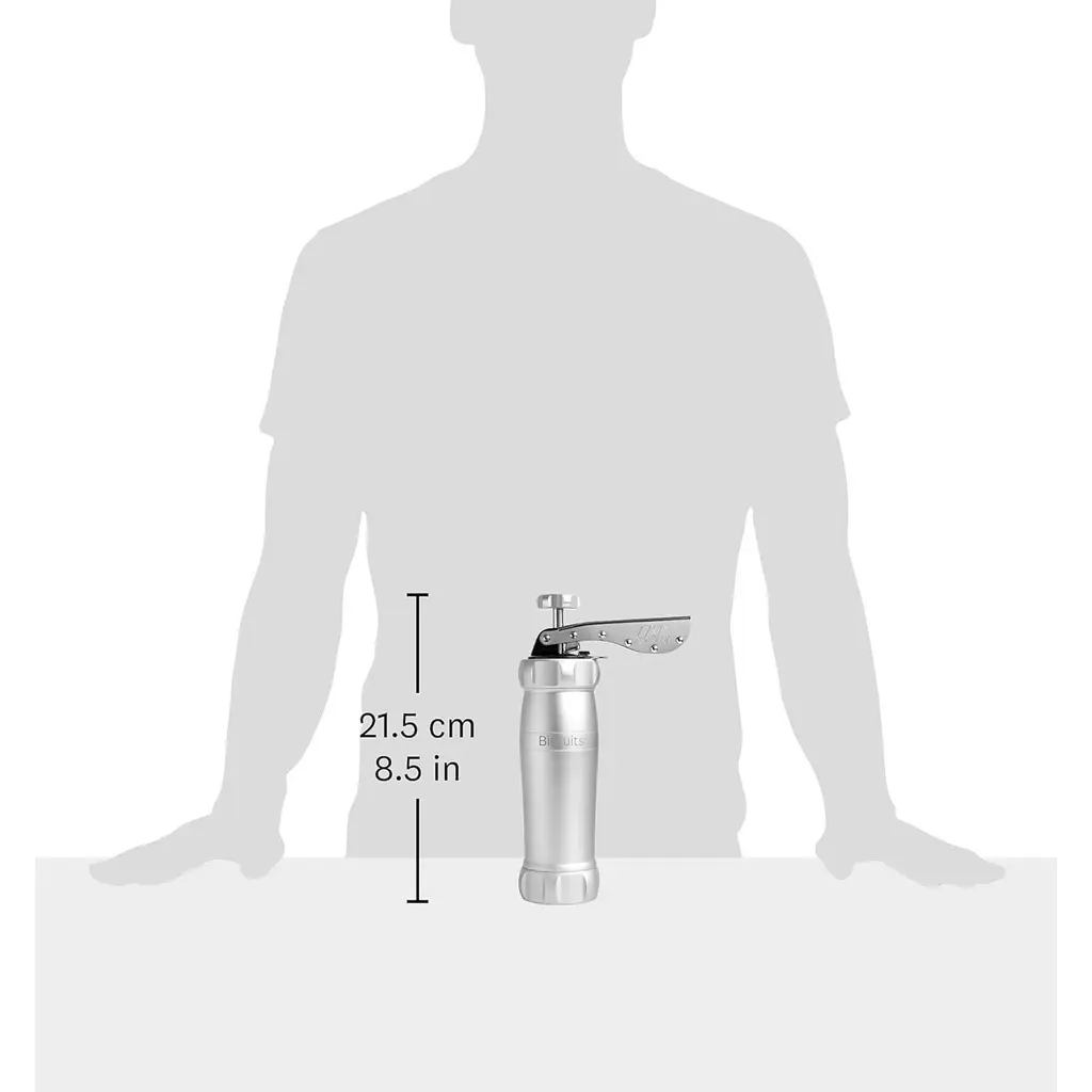 Marcato's Deluxe Atlas Biscuit Maker makes baking cookies easier and more fun. Simply select desired shape, fill with dough, and press the handle. Nothing tastes better than fresh-baked authentic homemade cookies! This easy-to-use Biscuit Maker, also called a Cookie Press, easily extrudes firm dough, like cookie dough, into many creative shapes. The Biscuit Maker includes 20 discs for traditional cookie shapes and complete instructions. Making that family sugar cookie recipe, or butter cookies, and other cookie press recipes has never been easier. No more rolling or cutting sticky, messy dough. It's easier and neater than using cookie cutters. Simply remove the top, insert the die shape, and fill with dough. Each press of the handle advances the dough with a firm, gentle pressure for consistent looking cookies. Disassembles for easy cleaning. Made from stainless steel. Hand wash in warm, soapy water. Available exclusively from HIC Harold Import Includes a 10-year manufacturer's warranty.