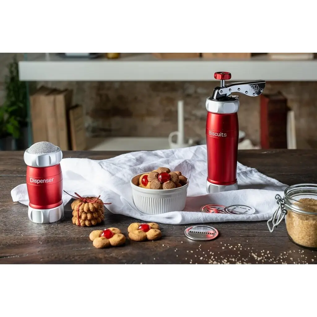 Marcato Atlas Deluxe Biscuit Maker Cookie Press With 20 Shape Discs, Red - Red