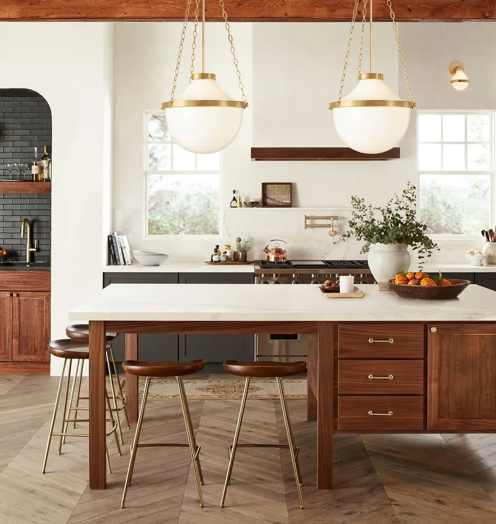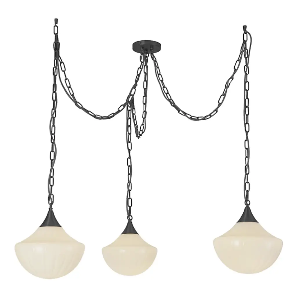 Marcella channels early 20th-century German chandeliers with a curved silhouette and warm glow.