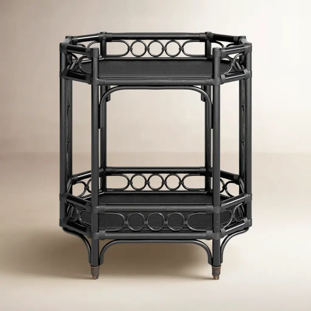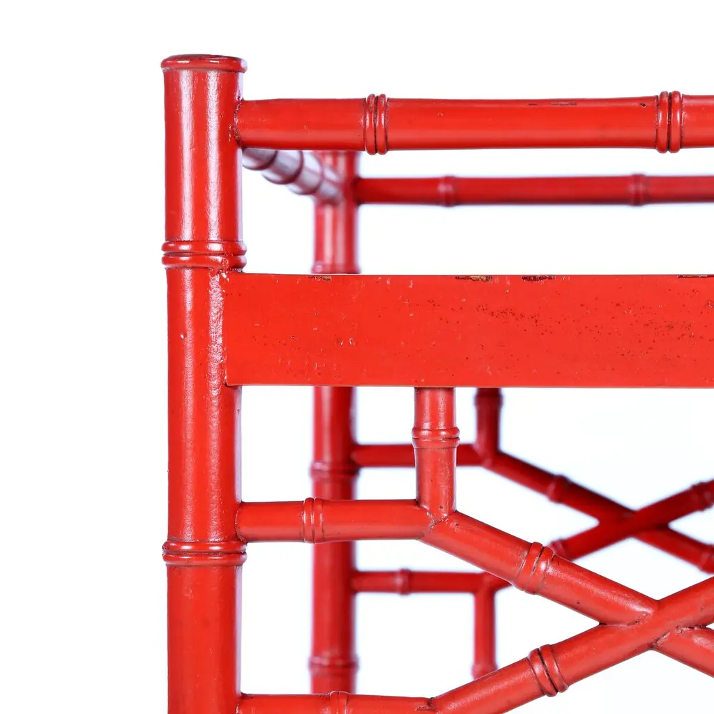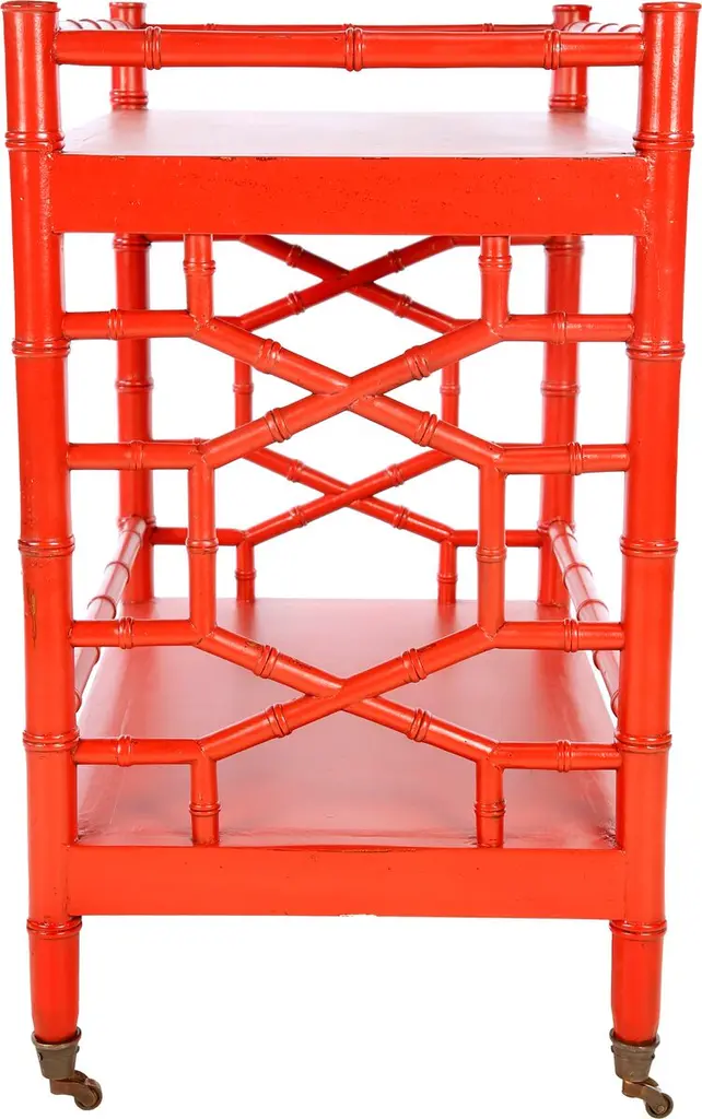 Made of durable mahogany carved to look like bamboo and given a vibrant red finish, this tea cart is as practical as it is elegant. Its two shelves can hold a wealth of bottles, drinkware, plants, or just about anything else you can think of. Wheels make it easy to move from room to room.