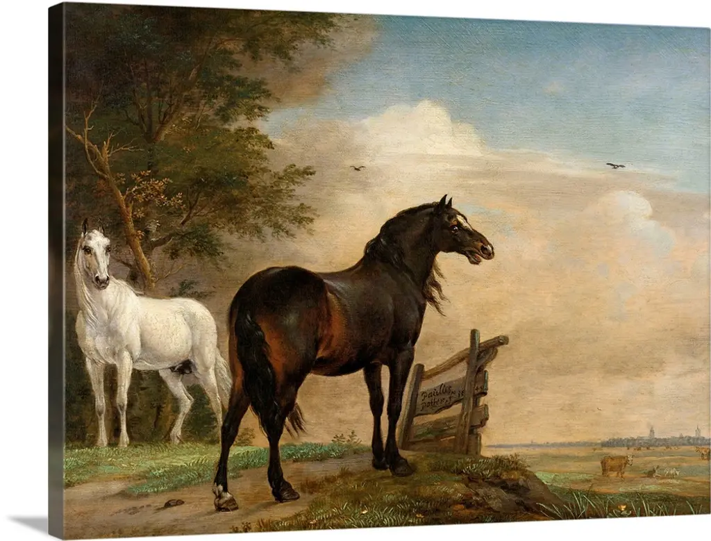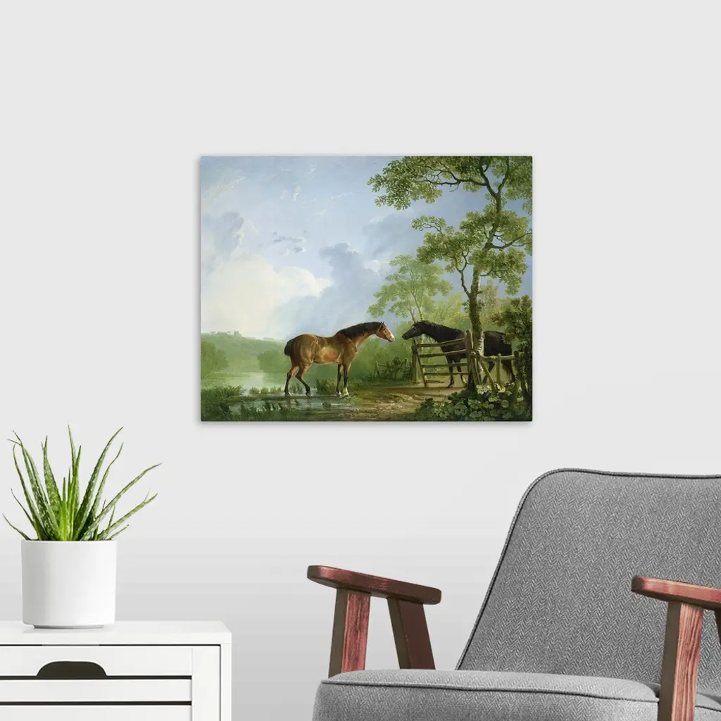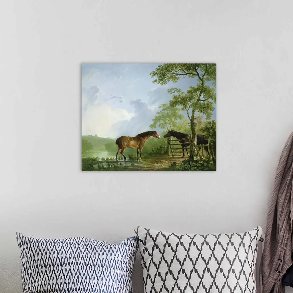 BAL226691 Mare and Stallion in a Landscape (oil on canvas) by Gilpin, Sawrey (1733-1807); 63.5x76.2 cm; Private Collection; Courtesy of Thomas Brod and Patrick Pilkington; English, out of copyright