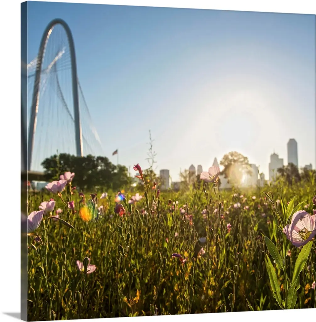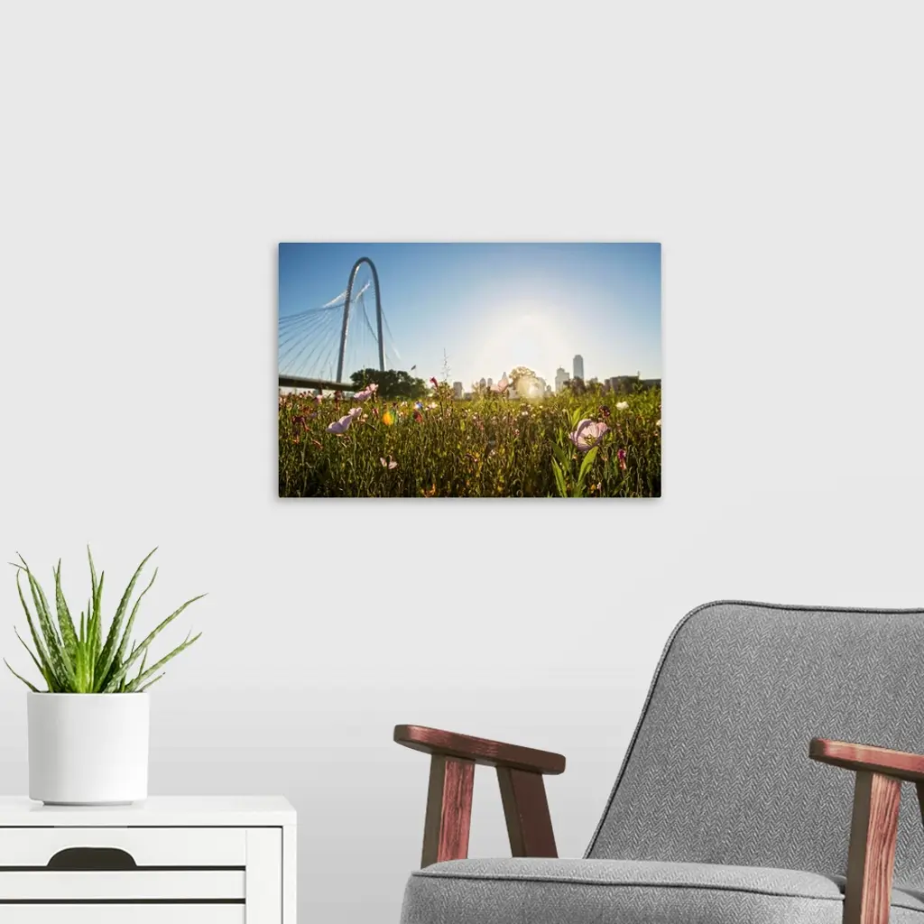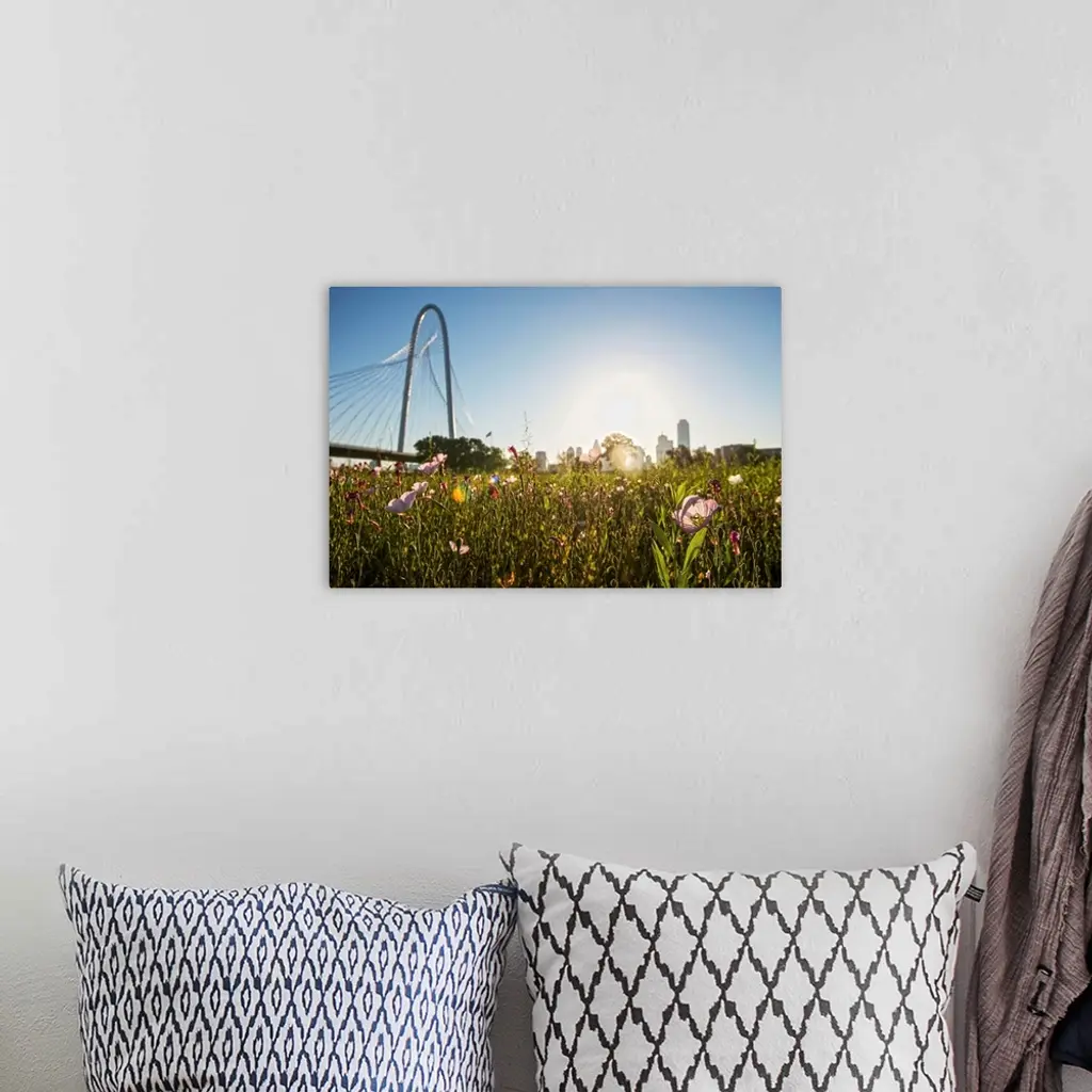 The Margaret Hunt Hill Bridge spans the Trinity River in Dallas, Texas.