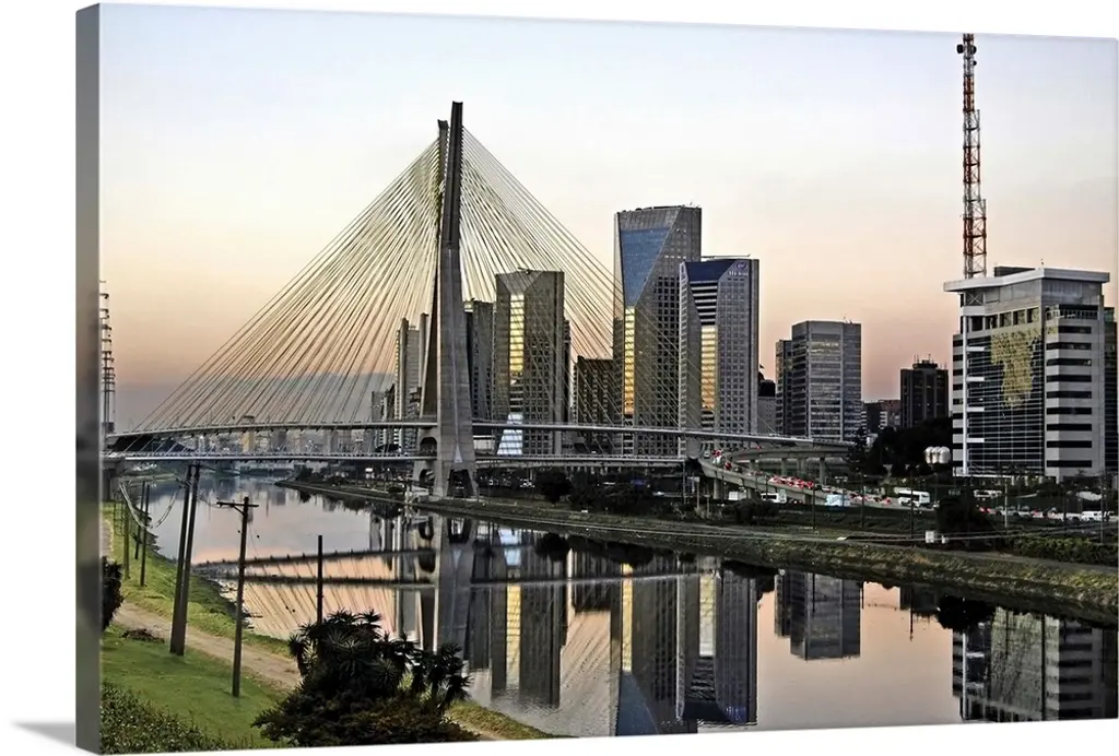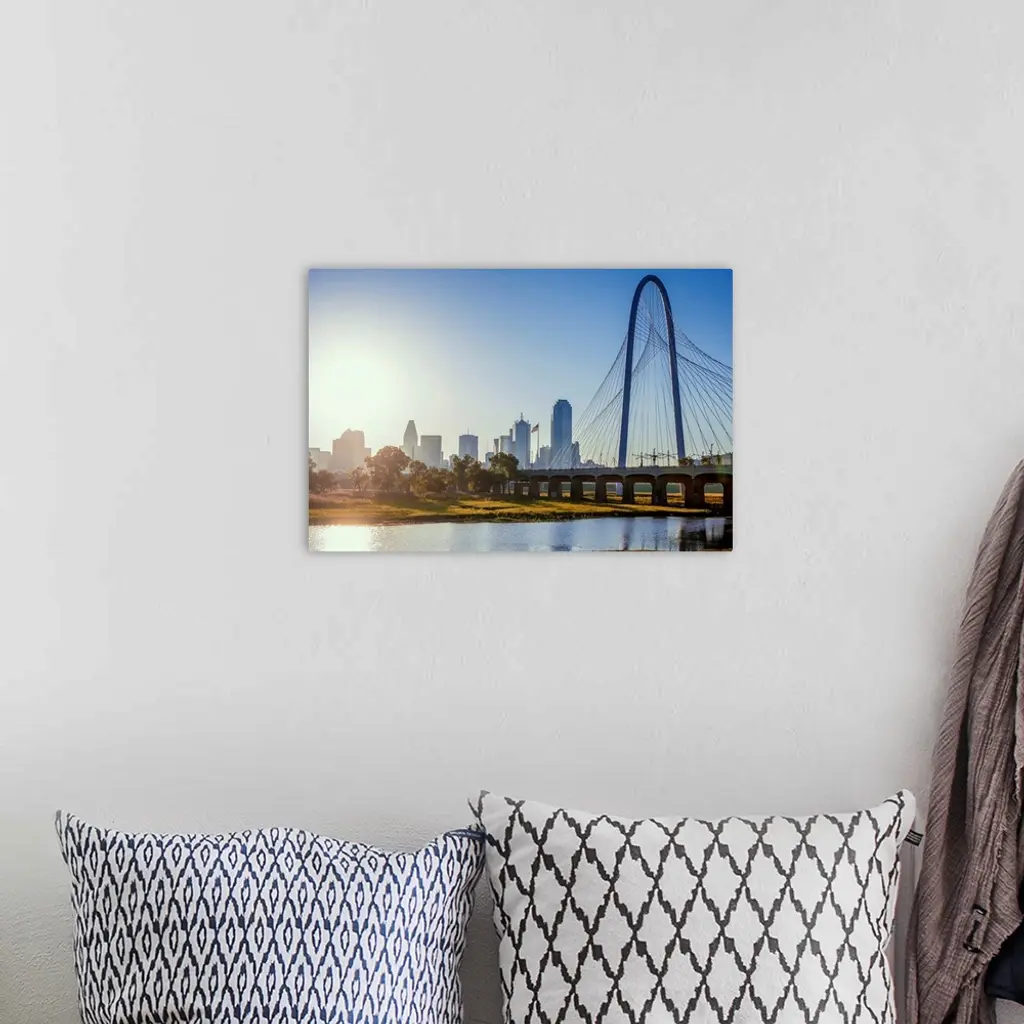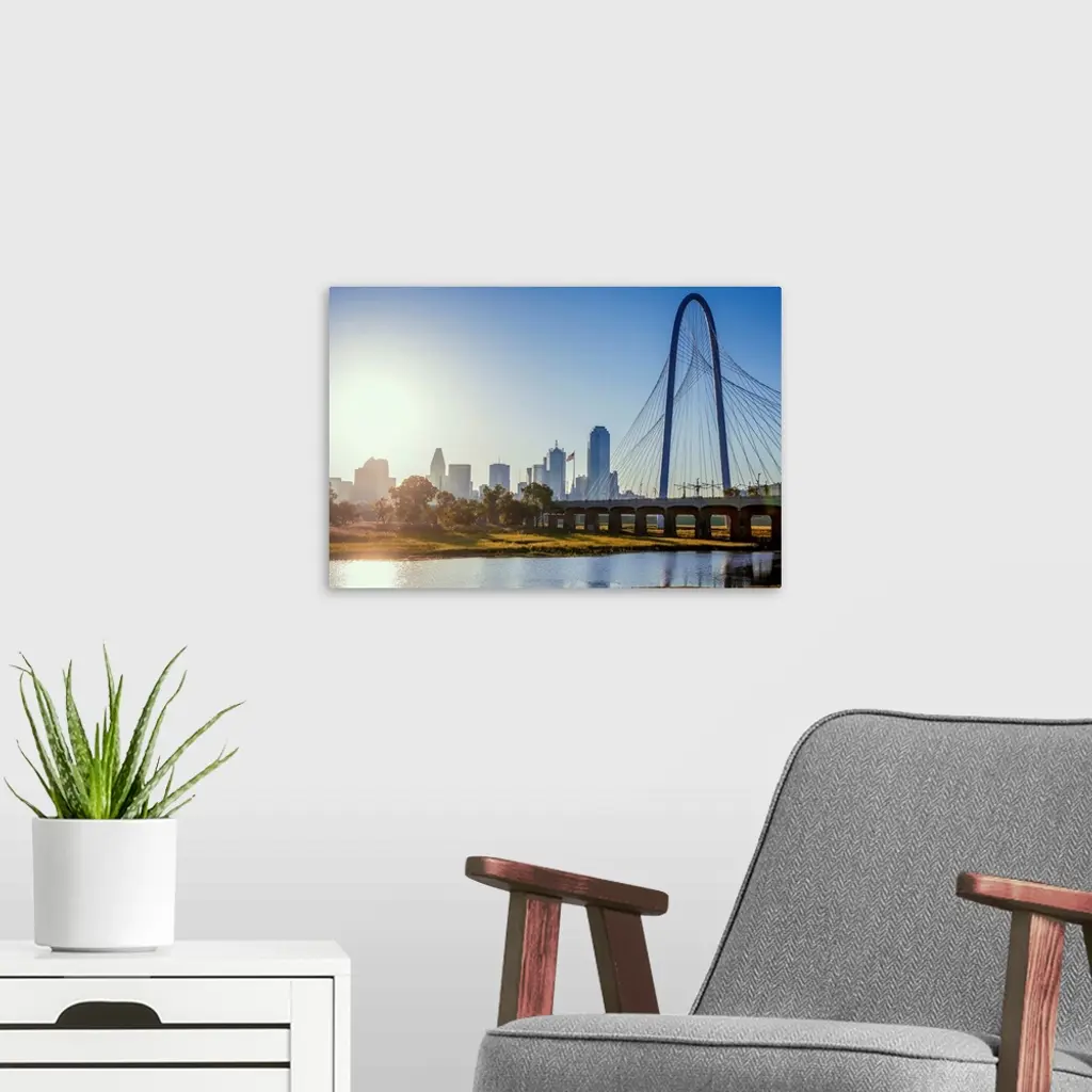The Margaret Hunt Hill Bridge spans the Trinity River in Dallas, Texas.