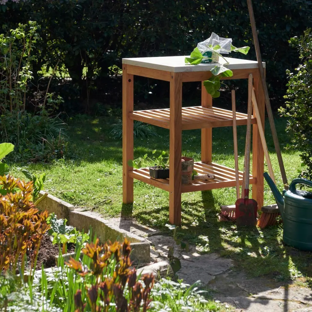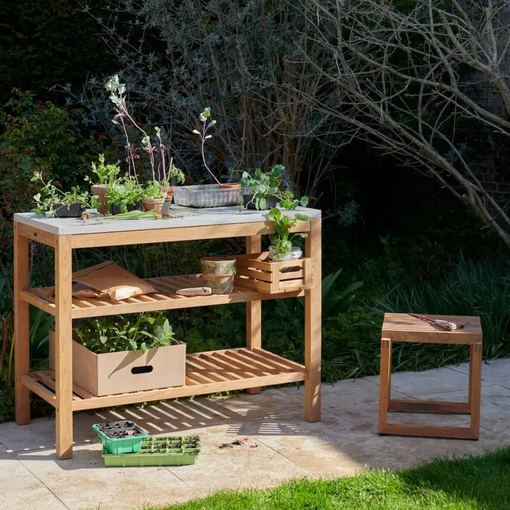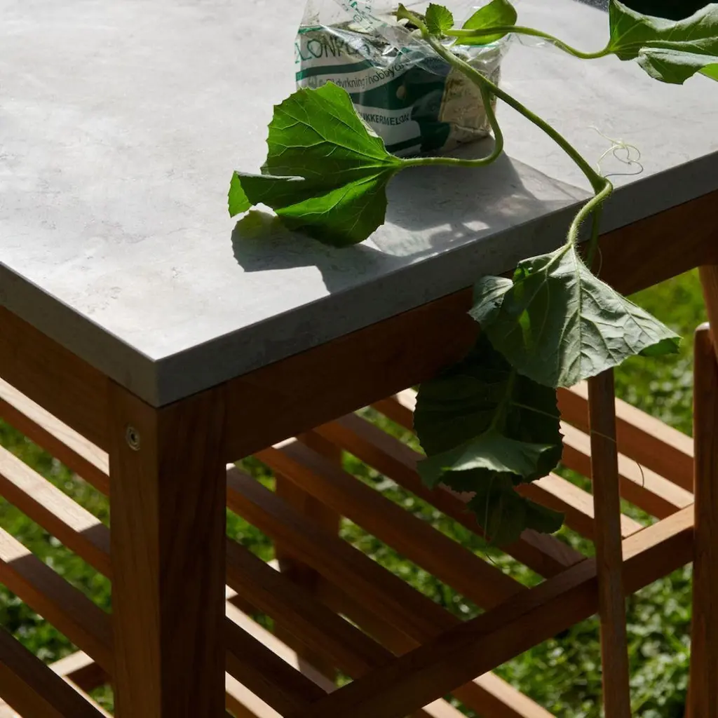Maria Zachariae outdoor 'Pantry Module 2' in limestone and teak for Skagerak Skagerak was founded in 1976 by Jesper and Vibeke Panduro, who took inspiration from their love of Scandinavian design and its rich tradition. The brand emphasizes sustainability by using responsibly sourced materials and production methods that minimize waste and reduce environmental impact. Each piece of handcrafted furniture is designed to age with grace and last for generations.The 'Pantry Module' was designed to be a versatile work station, both indoors and out. Built with two shelves to store utensils, crafting tools or your pots & soil, the Pantry Module is capped with a limestone top that is sanded smooth to accentuate the beautiful matte surface - perfect to hold your favorite outdoor portable lantern. The result is a delightful and practical addition of a workspace. Executed in FSC Certified teak and natural Swedish limestone to the exacting standards of Skagerak.Price per item. Available to order in unlimited quantities and in two sizes as the Pantry Module 1 and Pantry Module 2 - please see our separate listing. This listing is for the Pantry Module 2 in teak and limestone. In stock lead time 2-3 weeks. Out of stock lead time can be an additional 3-4 weeks, or longer. Lead times and stock availability are subject to change at any time and without notice. Please inquire for current lead times prior to placing time sensitive orders.Please note that only one representative example of each item is shown in the images. Limestone varies from item to item due to the organic and handmade nature of their fabrication. The limestone used is untreated and has a light sand grey color with warm nuances. Since the material has a porous and open surface structure it is receptive to grease, stains and acid. Over time, and with use, it will eventually embrace a beautiful patina adding to the uniqueness of each piece.Made to order.All sales final.