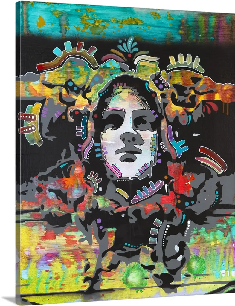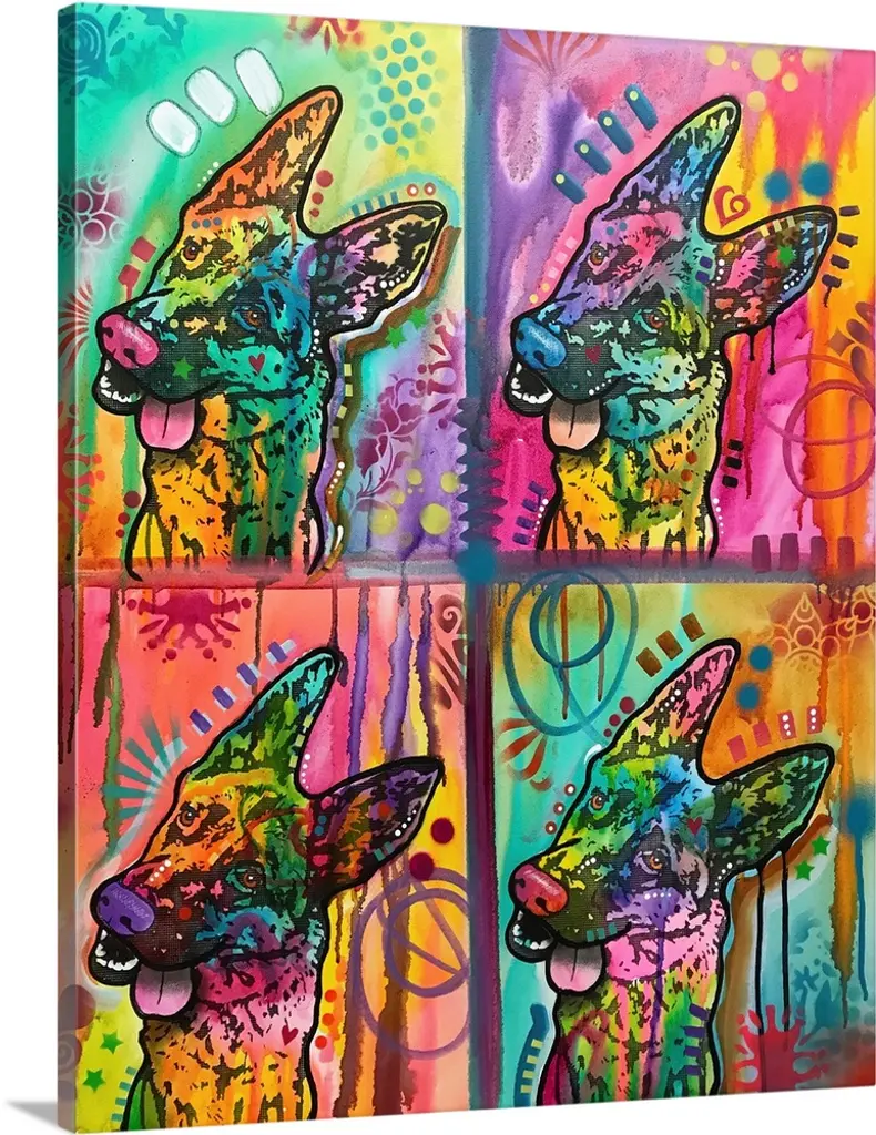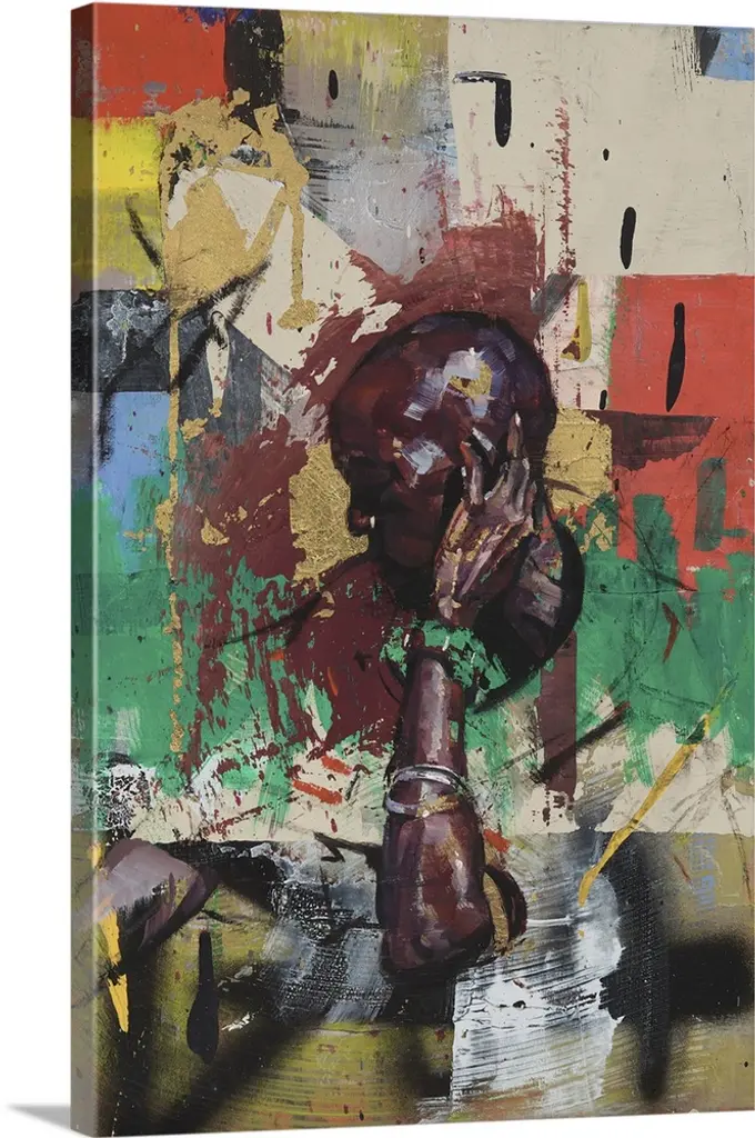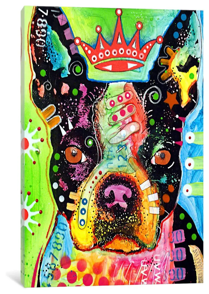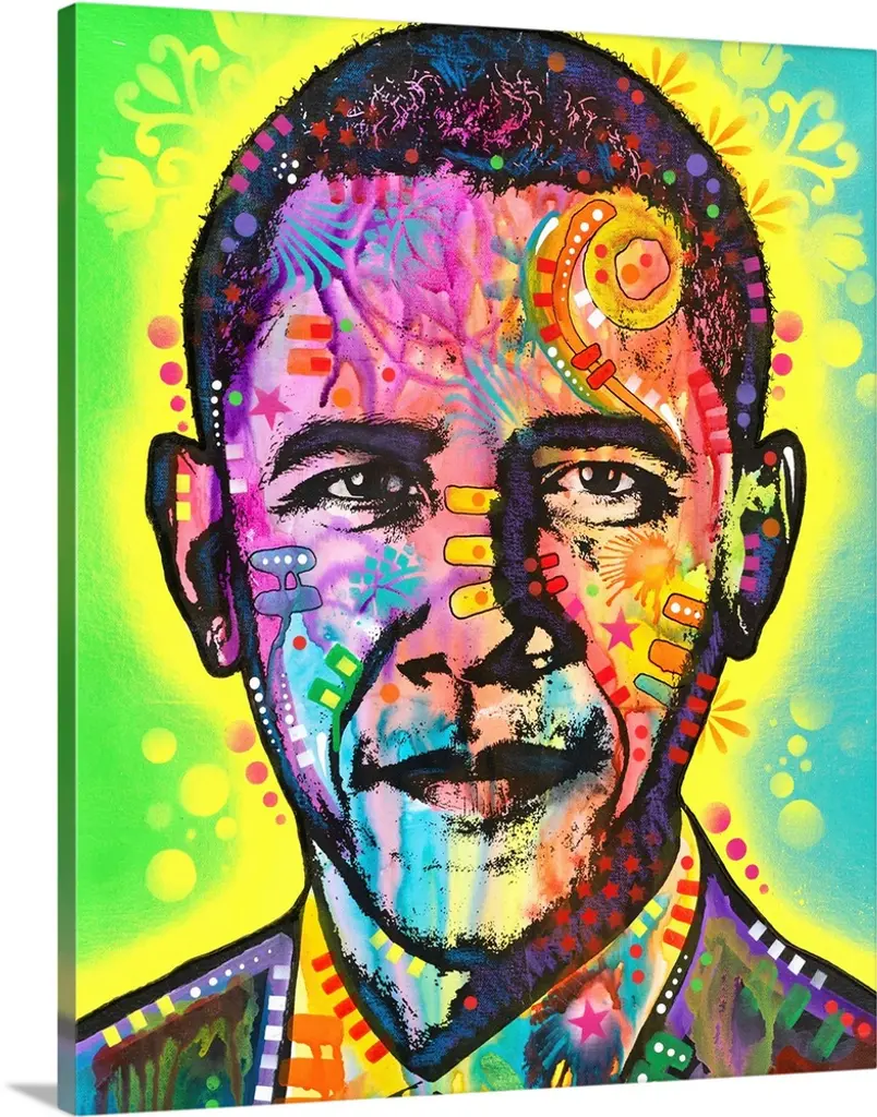 12 colorful tiles placed together to create Marilyn Monroe's face on top of a brown background with faded money illustrations.
