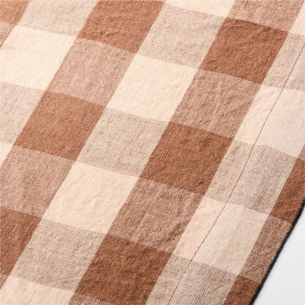 Part of our Marin table collection, our Buffalo check table runner is made of high-quality, sustainably sourced European linen that's exceptionally soft and supple. Woven of brown and natural yarn, the runner dresses the table with the warm and casual look of a bold plaid.