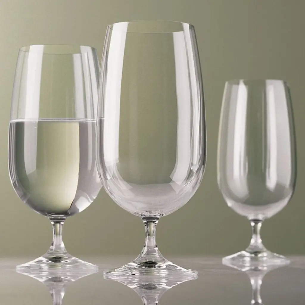 The most basic of beverages gets treated to a beautiful vessel all its own. This stylish, footed design is appropriate for everyday use or entertaining, and pairs well with a variety of other stemware. Also suitable for iced tea and other beverages.