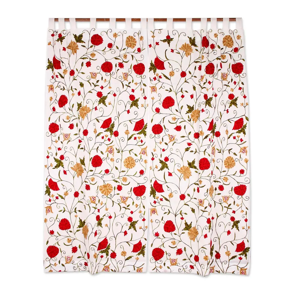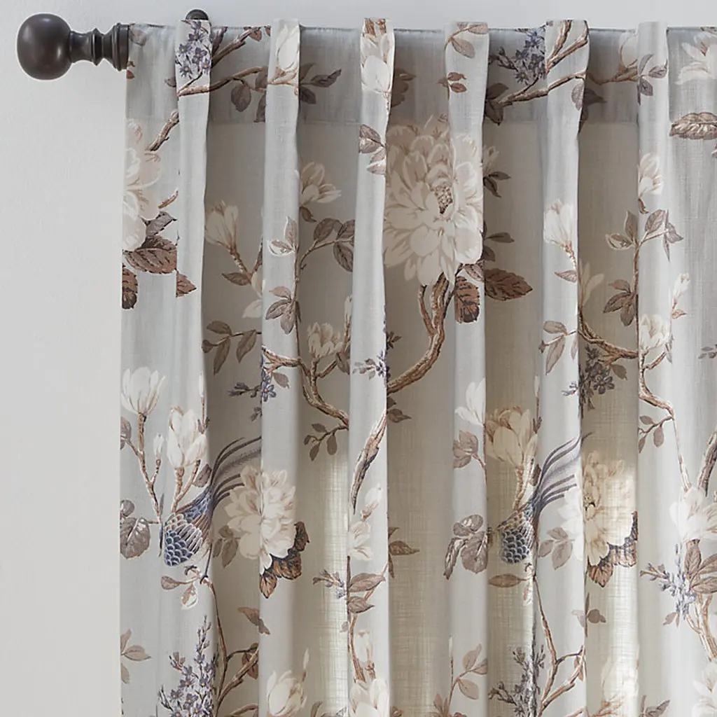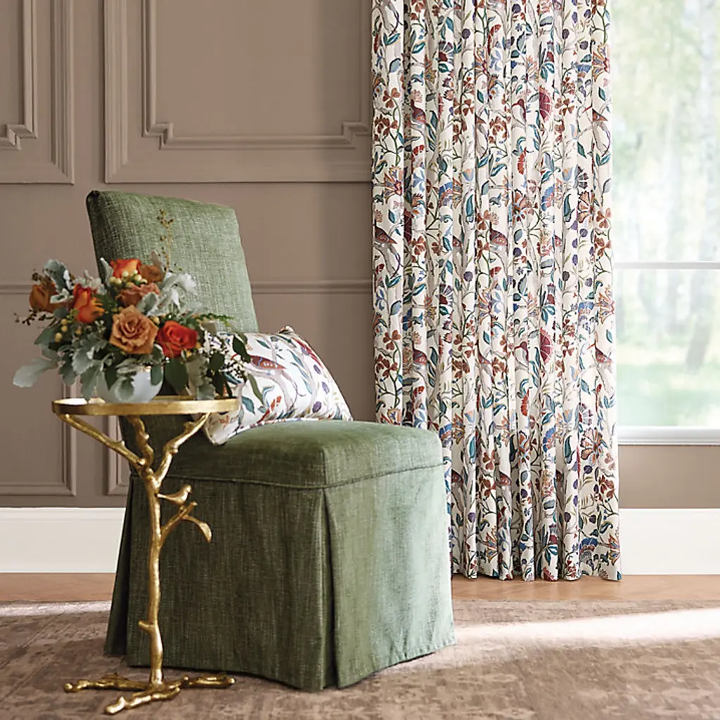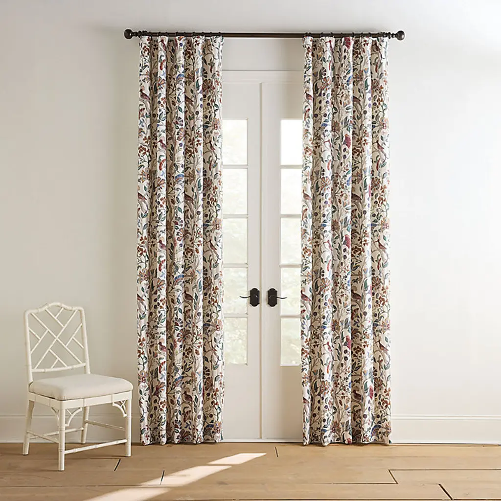 Our Marin Drapery Panel opens the window to a garden of color alive with exotic birds and blooming florals. The stylized botanical motif is finely printed on lightly textured cotton-linen blend to bring out the vibrant hues and exquisite details. This designer window treatment is so lush and sophisticated, you can design an entire living room or bedroom decor around it. Marin Botanical Drapery Panel features:
