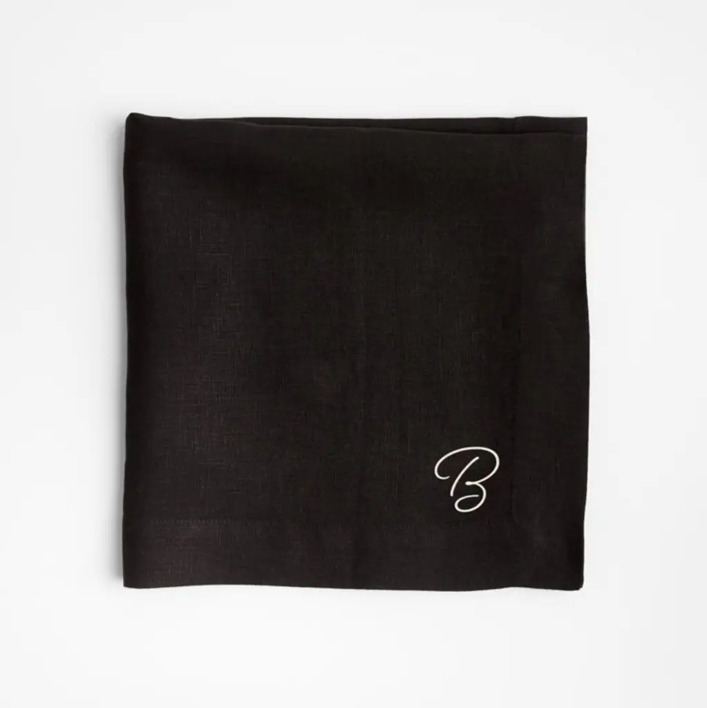 Part of our Marin table collection, this inky black dinner napkin is made of quality European linen that's exceptionally soft and supple. Each black napkin unfolds to a generous 22-inch square, pre-washed for extra softness. Tailored with miter corners, the linen napkin pairs beautifully with our modern dinnerware and cleans up easily in the washing machine and dryer.