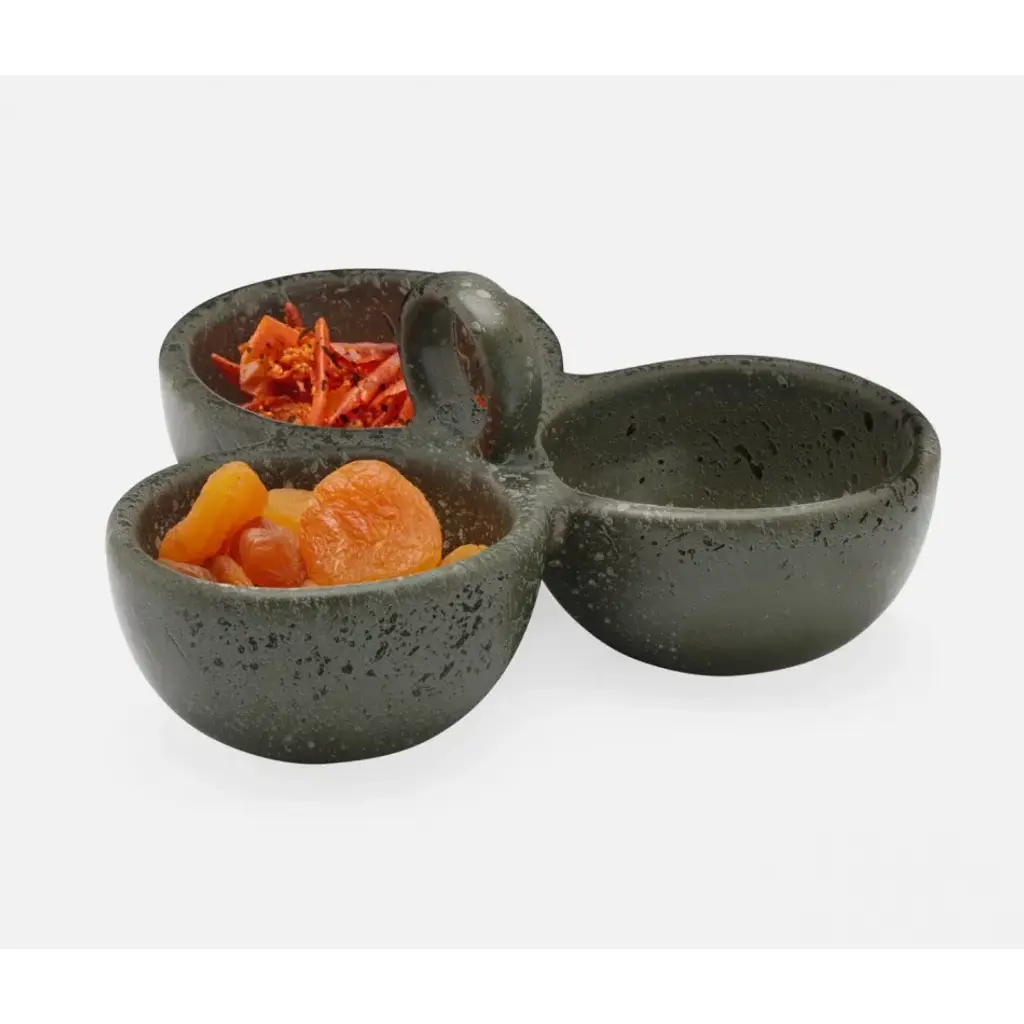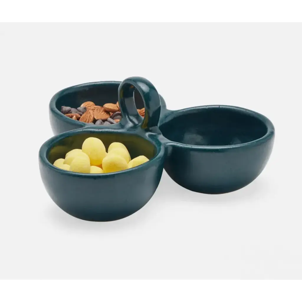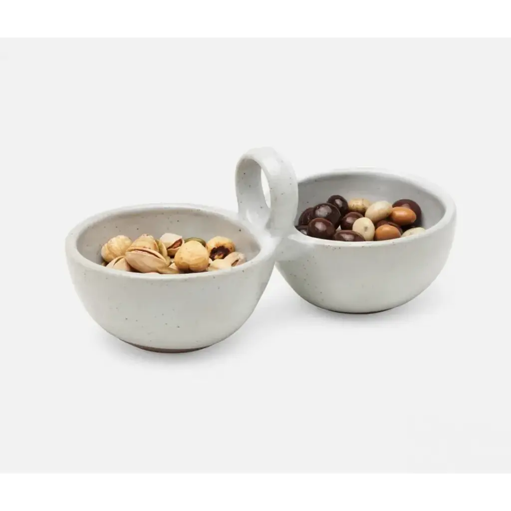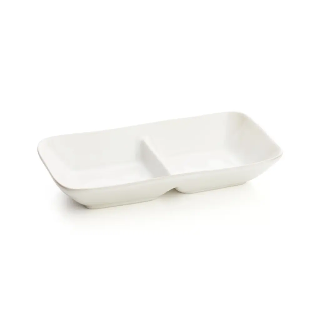 The perfect complement to our coveted casual Marin dinnerware, this divided server exhibits the same free-form, organic lines and hand-antiquing along the rim. The two-part bowl is perfect for serving pita chips and hummus, tortilla chips and guacamole or strawberries and truffles. Or use the compartments for olives and pits, nuts and shells or edamame and pods. The server goes from the oven to the table and cleans up easily in the dishwasher after elegant dinner parties or weeknight meals. Pair with the other handcrafted dinnerware and serveware pieces in our exclusive Marin collection for an effortlessly elegant look.