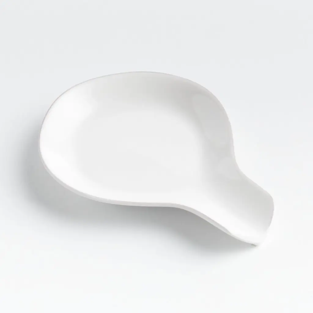 Made to complement our coveted Marin collection, this lovely spoon rest exhibits the same free-form, organic lines. Talented craftspeople glaze the graceful ceramic curves by hand in a soft white that reveals hints of the stoneware below. The spoon rest protects countertops from saucy spoons and spatulas. To complete the artisanal look, pair with our coordinating Marin dinnerware and serving pieces.
