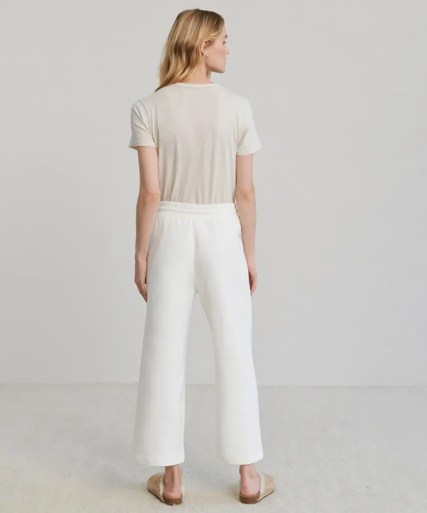 Marina Sweatpant White Elevate every moment at home or on the go with our answer to the perfect everyday sweats. With a more structured feel, this loungewear essential offers up a clean and modern take on classic comfort.  100% cotton. Made in the USA. Wide-leg sweatpant with drawstring waist.